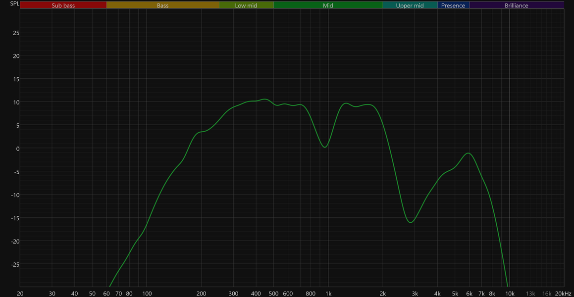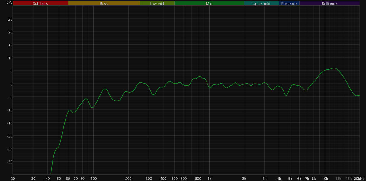 Звучит Honor Choice Portable Speaker Pro настолько хорошо, насколько это может делать портативная колонка. Производитель скромно заявляет звучание от 100 Гц, но на деле оно стартует где-то от 60 Гц, что видно по графику АЧХ ниже, который получен при вертикальной установке колонки и размещении измерительного микрофона на расстоянии примерно 1 метра. Бас присутствует, но при этом подается без выраженного акцента, что многим слушателям может даже понравиться — звучание получается более «универсальным», подходящим не только для танцевальных треков. При этом СЧ-диапазон хорошо читается, хоть в случае портативной пластиковой акустики и сложно говорить про детализацию. Ну а высокие частоты присутствуют, но при этом лишены характерных для них дефектов — в данном случае это самое важное.