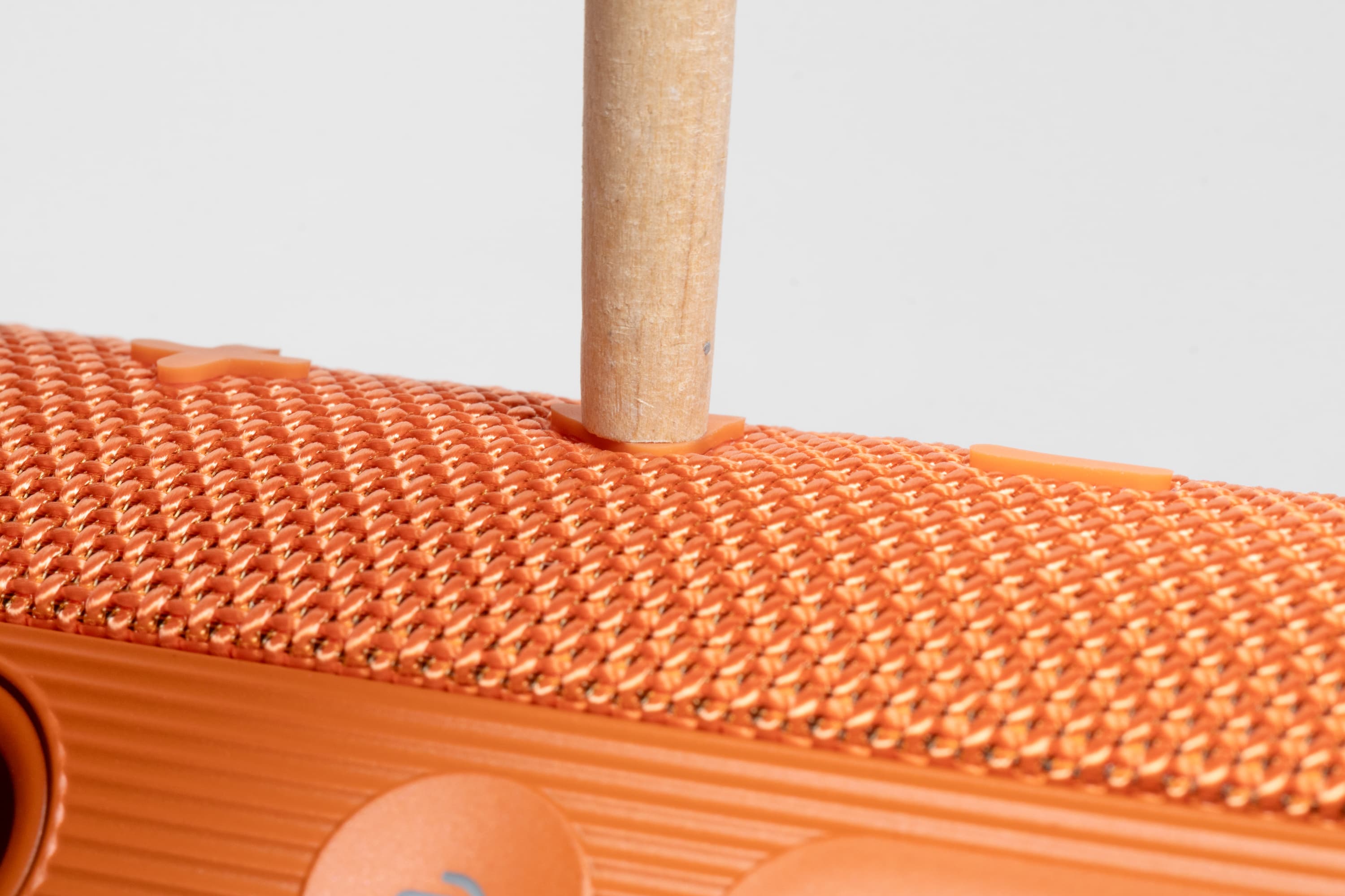 Маленькие силиконовые ножки на боковой поверхности помогают размещать колонку горизонтально, благодаря им она никуда не укатится во время работы.