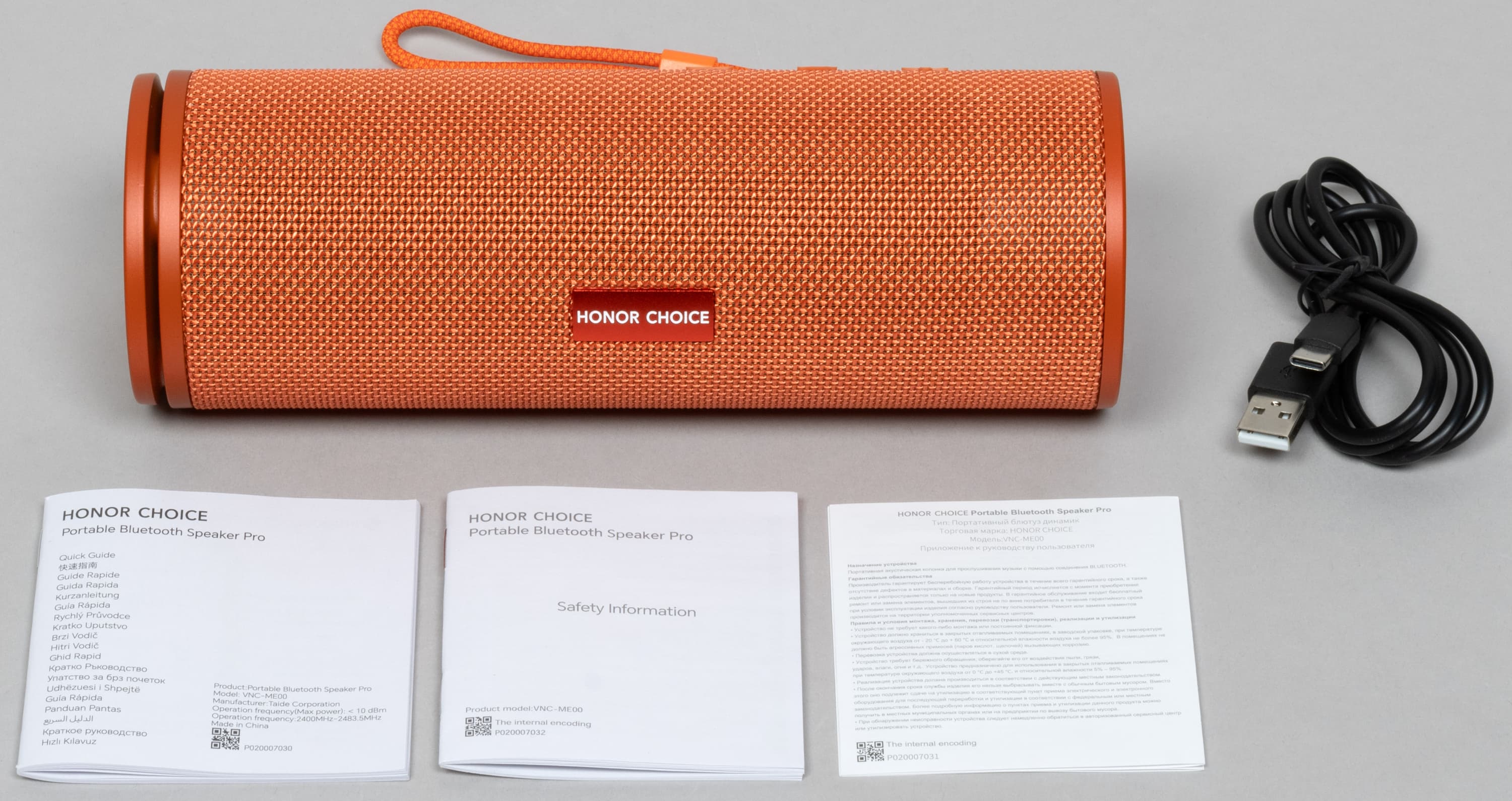 В комплект помимо колонки и документации входит кабель USB-A — USB-C для зарядки, настолько длинный, что его действительно можно использовать, а не просто положить на полочку «на всякий случай» — 1 метр. В наше время это редкость.