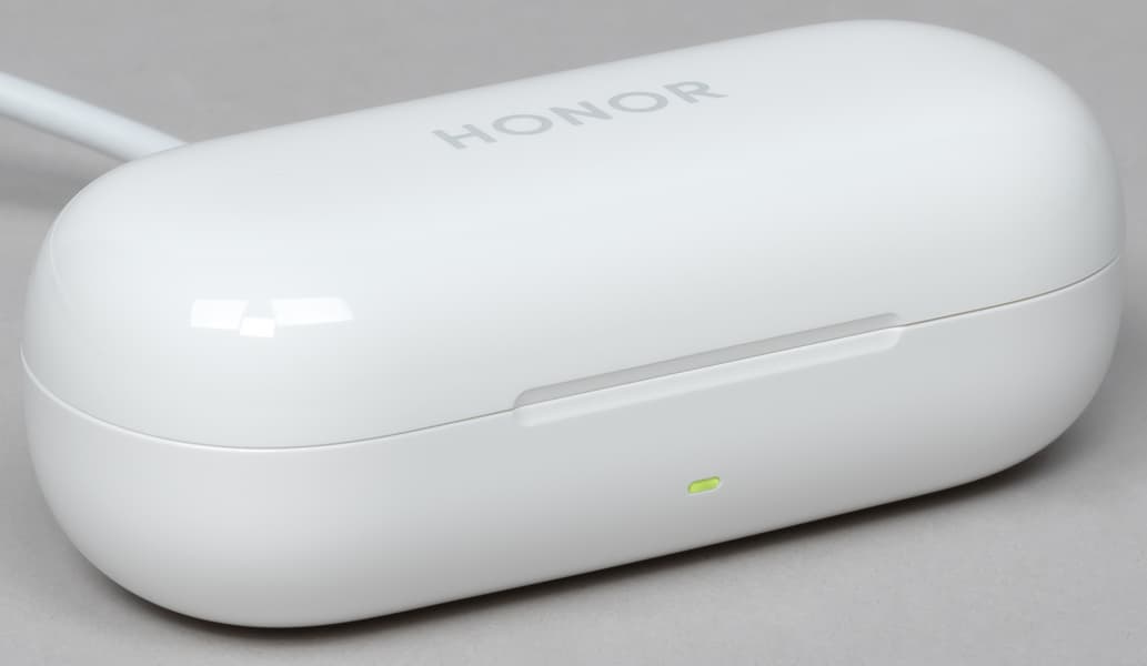 Время автономной работы наушников — 3,5 часа. У нас на громкости немного выше средней они работали чуть меньше — порядка 3 часов. Плюс еще три раза полностью заряжались от кейса, на четвертый ресурса аккумулятора кейса слегка не хватало. Если слушать на невысокой громкости — из них вполне можно «выжать» заявленные 13 часов автономности. Если ни в чем себя не ограничивать — получится порядка 10 часов. Далеко не рекорд, но на день вполне хватит. Статус зарядки можно отслеживать по индикатору на передней панели кейса, плавно меняющему цвет с красного через оранжевый и до зеленого.