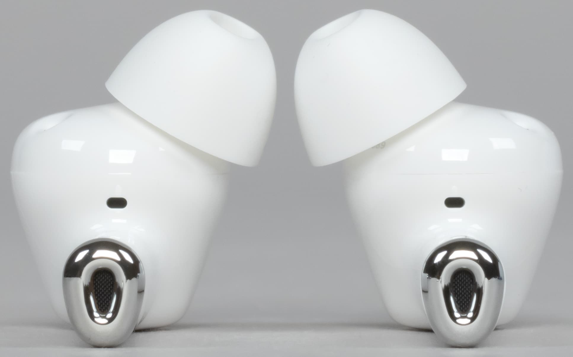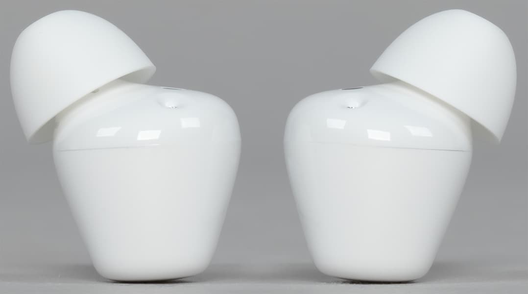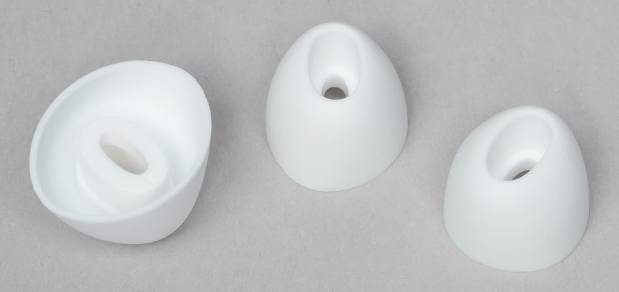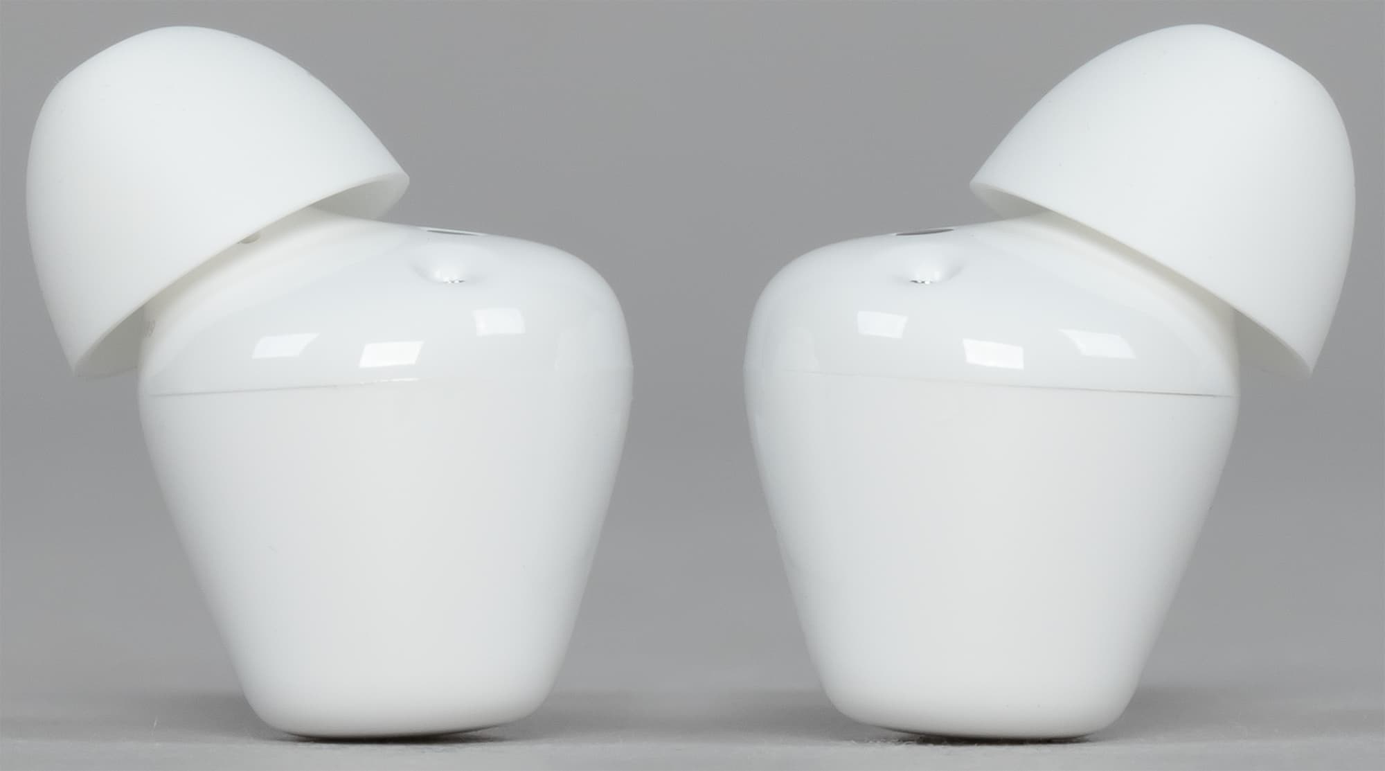В комплекте поставляется три пары сменных амбушюров. Отверстие в них имеет овальную форму — как и звуковод наушников.