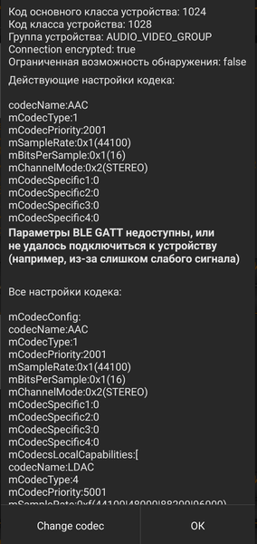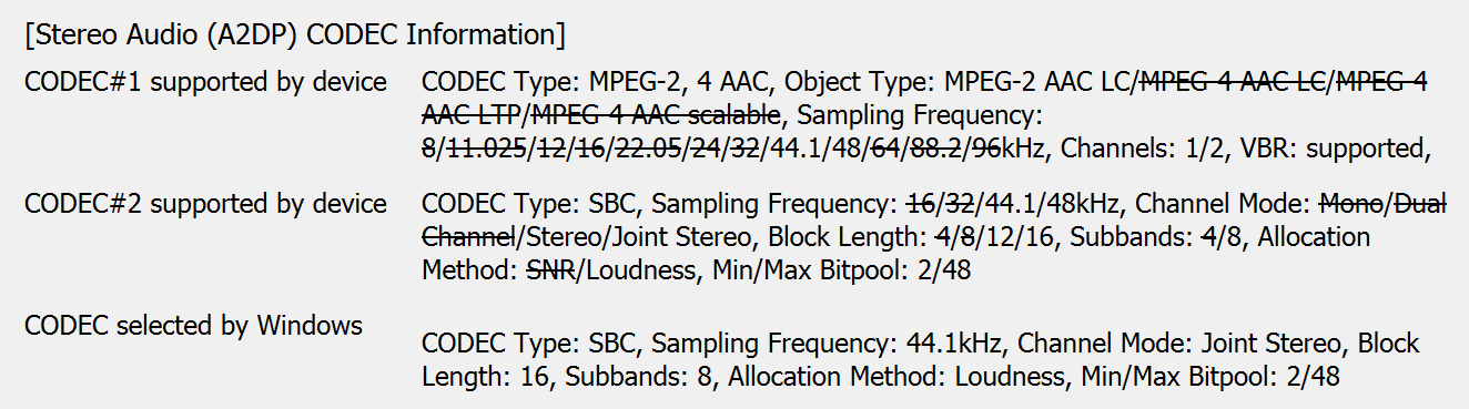 Одновременную работу с несколькими устройствами гарнитура не поддерживает, что было проверено при подключении к ПК под управлением Windows 10. Заодно мы получили полный список используемых кодеков с помощью утилиты Bluetooth Tweaker.