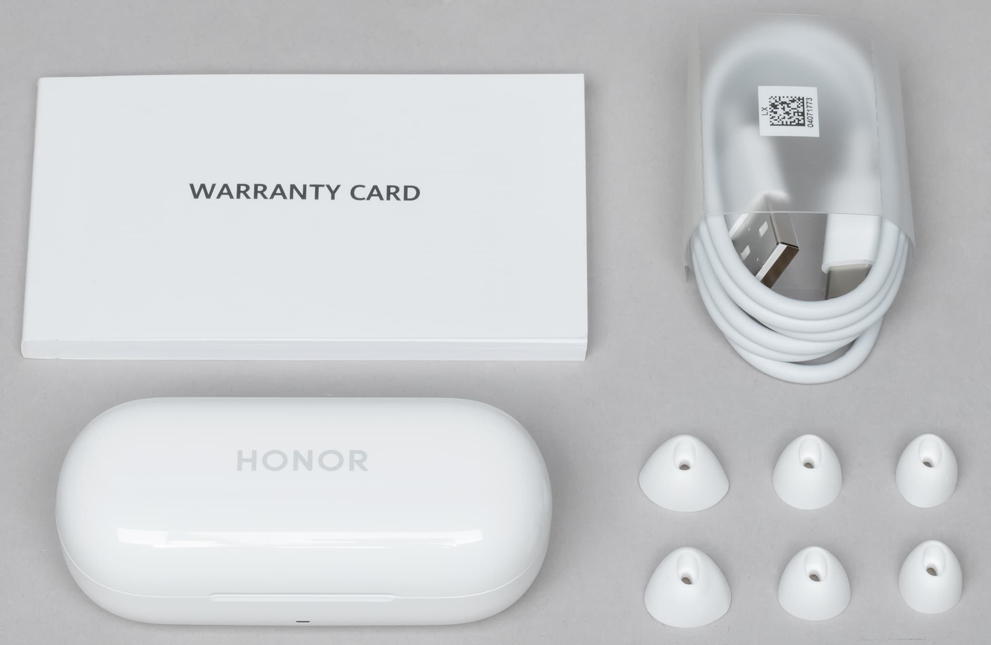 Комплект поставки включает документацию, сами наушники в зарядном кейсе, три пары сменных амбушюров и метровый кабель USB—USB Type-C для зарядки.