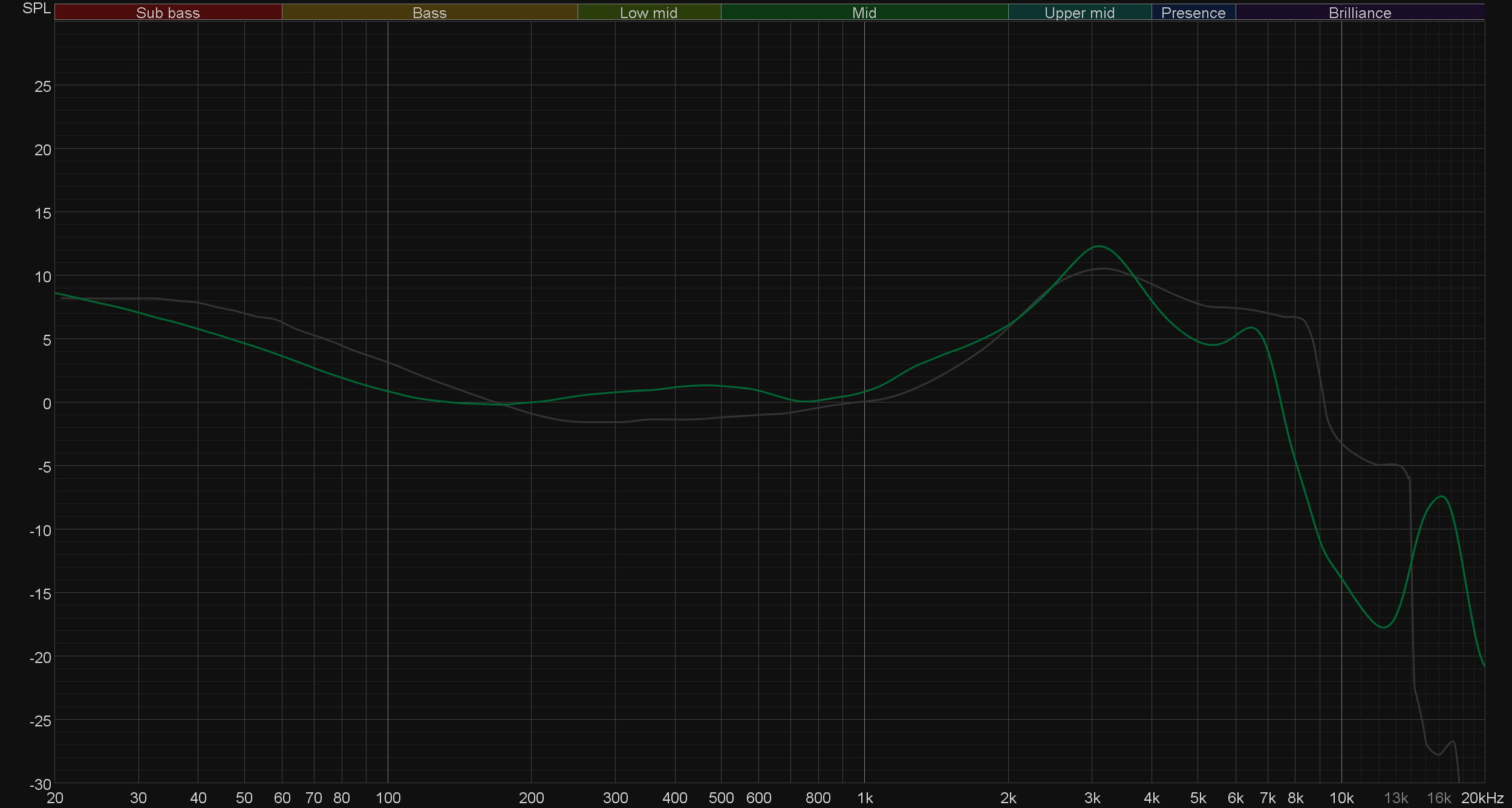 Серым цветом на графике выше показана целевая АЧХ для внутриканальных наушников, созданная командой Harman International под руководством доктора Шона Олива. Люди неодинаково воспринимают звук разной частоты, поэтому даже самые точные измерения могут не соответствовать реальному пользовательскому опыту. Для компенсации этих различий и используется целевая АЧХ Harman. Близкое к ней звучание оценивалось сотнями участников экспериментов как нейтральное, сбалансированное, естественное и так далее.