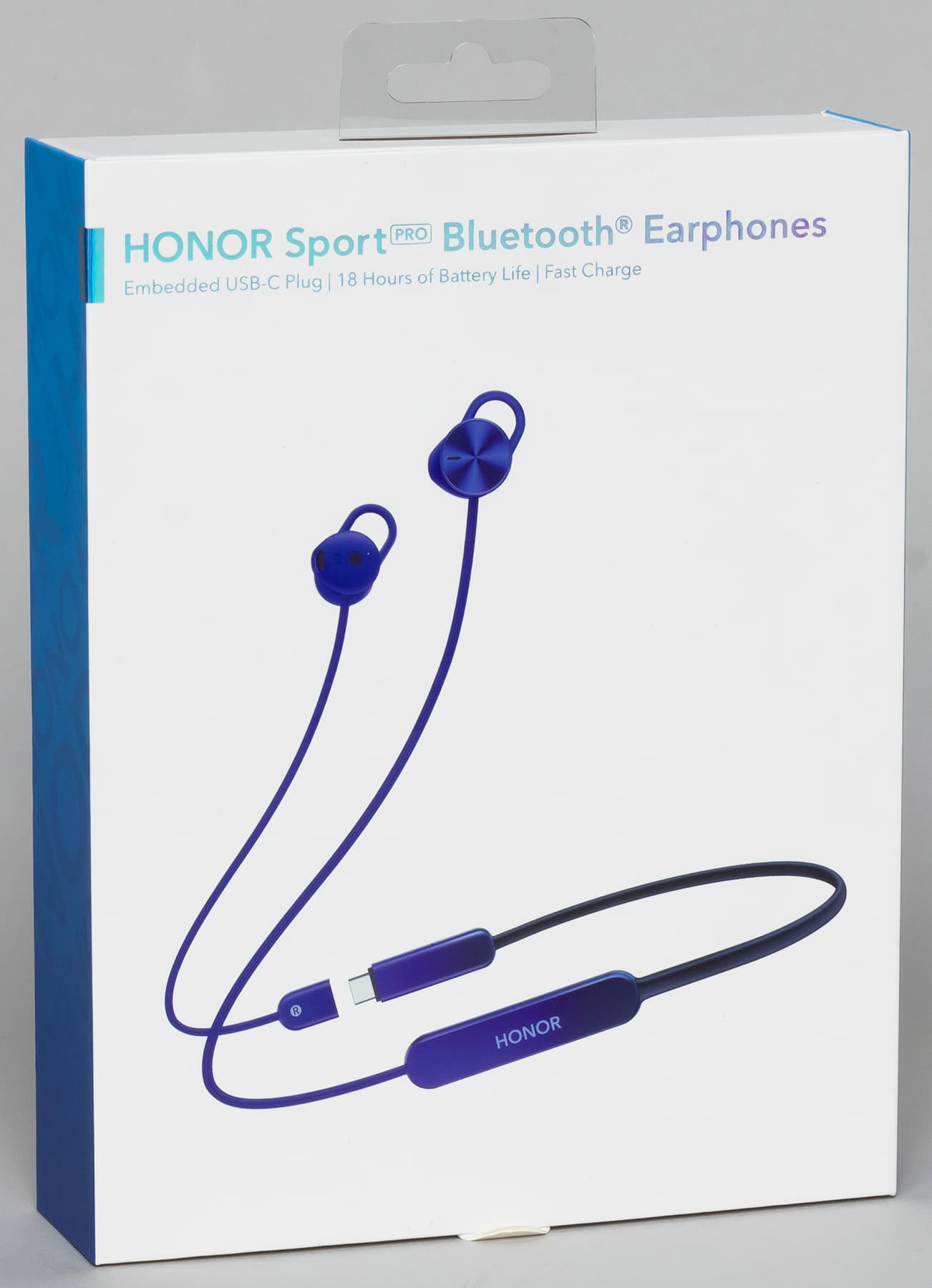 Honor Sport Pro поставляются в белой коробке-книжке с изображением устройства и его кратким описанием, часть элементов упаковки имеет градиентную окраску — как и сама гарнитура. Наушники внутри прочно закреплены с помощью пластикового ложемента.