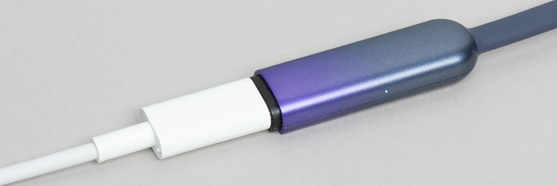 С другой стороны расположен небольшой индикатор зарядки и состояния устройства, который практически незаметен, пока выключен. Цветов у индикатора два: красный и белый.