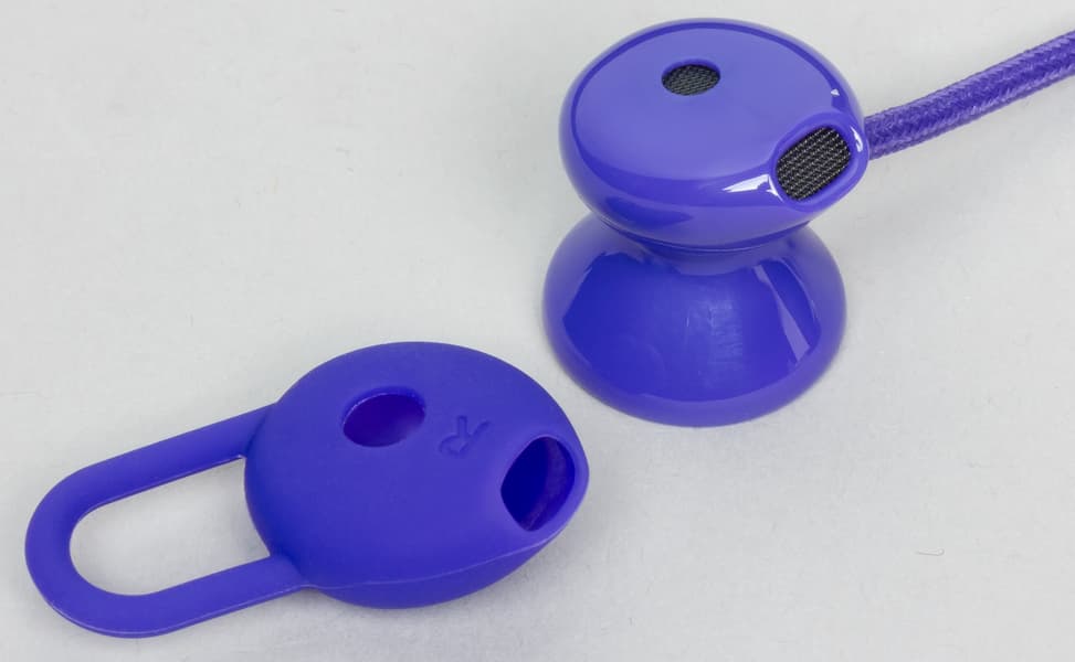 Наушники выполнены из алюминия и покрыты ABS-пластиком. Как уже говорилось выше, они имеют форму «вкладыша», а для крепления в ухе используются силиконовые насадки. Отверстия звуководов закрыты металлической сеткой.