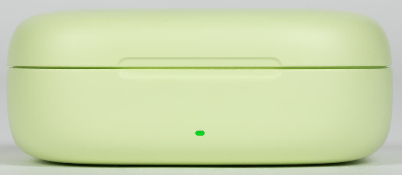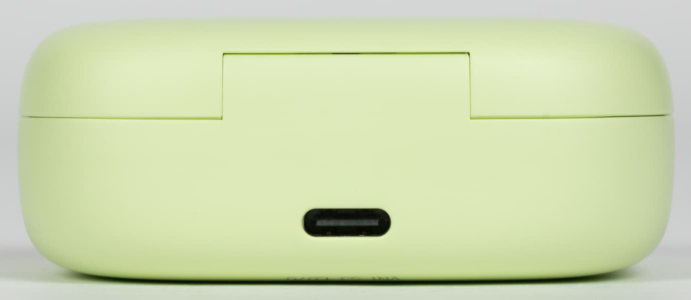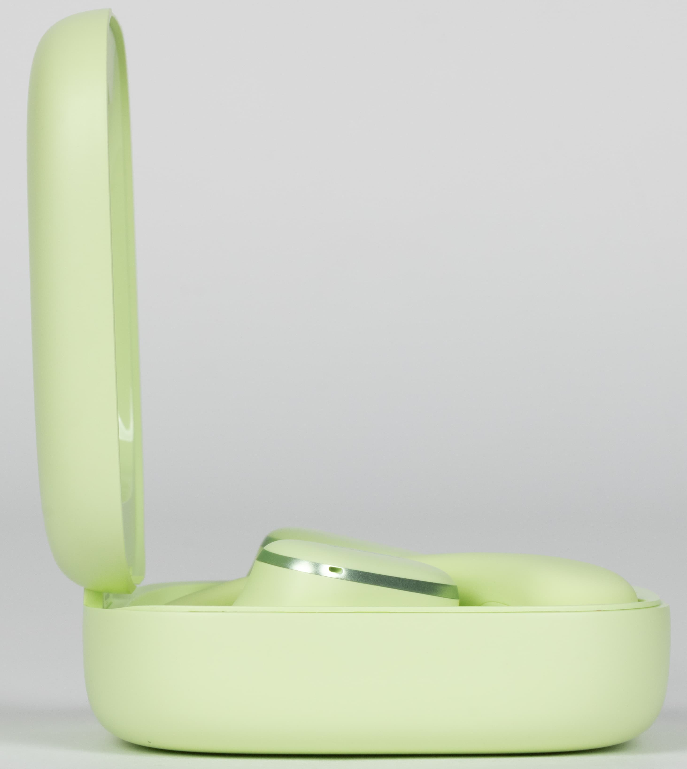 Внутри слотов для наушников видны подпружиненные контакты для зарядки. По центру снизу находится кнопка запуска режима сопряжения. Нажимается она с усилием сильно выше среднего и размещена заподлицо с поверхностью, что обеспечивает защиту от случайного нажатия.
