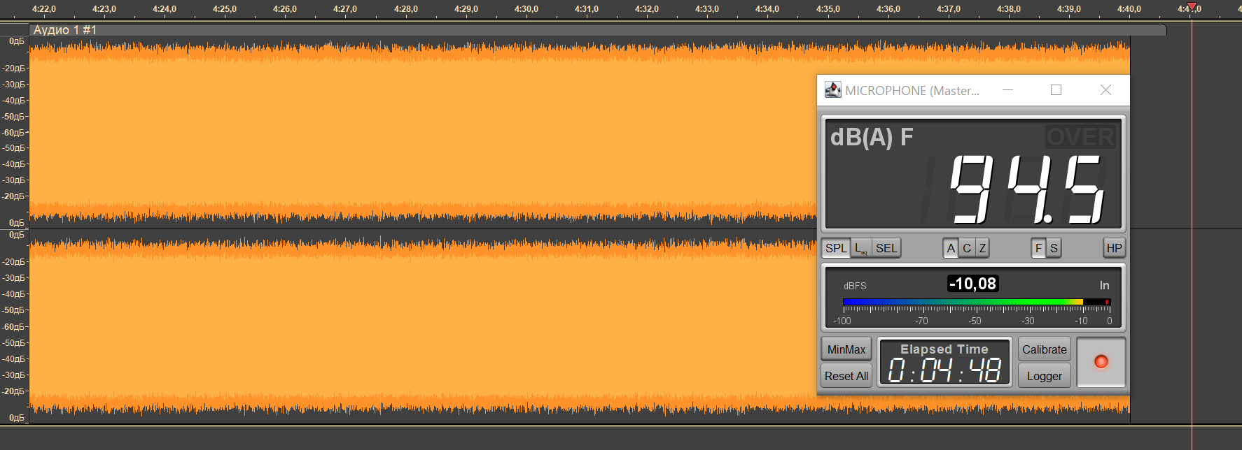 Посмотрим, насколько хорошо справится со своей задачей «шумодав». Для этого снова запишем пару треков, но добавим фоновый шум: включим в расположенной недалеко от места записи акустике звук оживленной улицы и посмотрим, как это отразится на разборчивости речи.