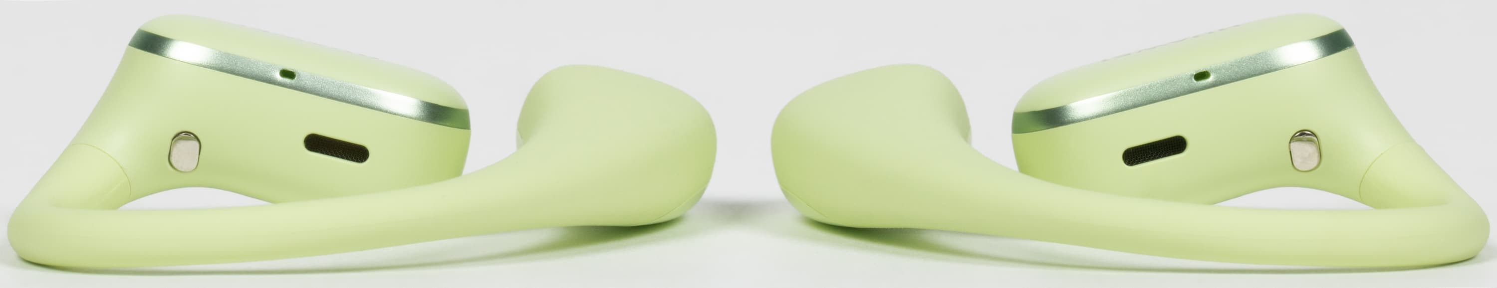 Внутри заушины выполнены из нитинола — сплава никеля с титаном, обладающего свойством запоминания формы. Такой вариант мы уже видели в коннекторе C-bridge у Huawei FreeClip. Элемент получился гибким, но при этом с отлично подобранной упругостью — то, что нужно для качественной и комфортной посадки наушников.