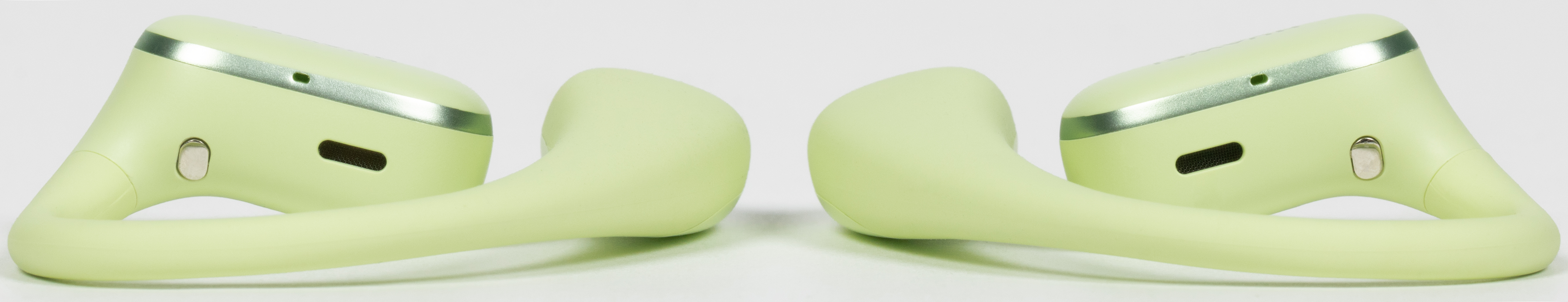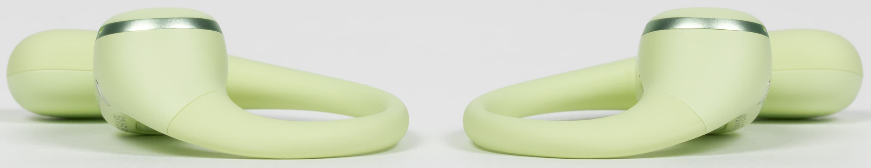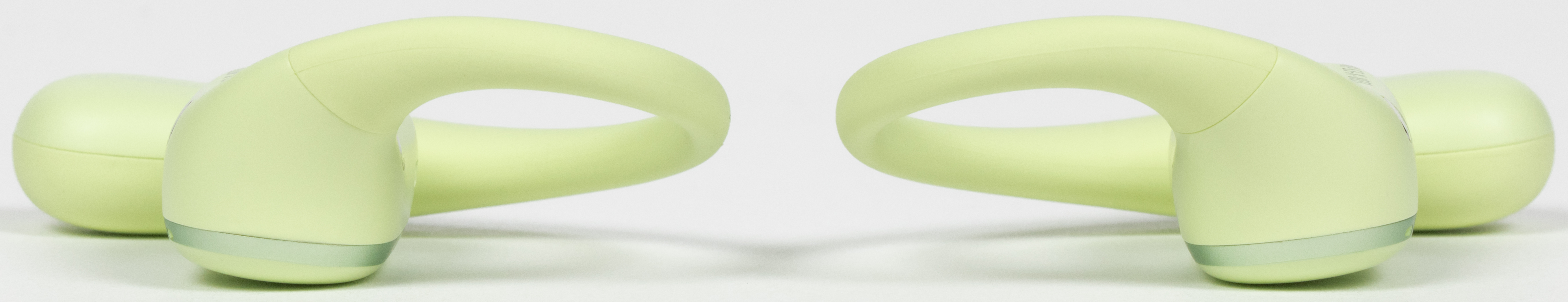 Дужка размещена немного под углом к основной части корпуса, благодаря чему при ношении наушники разворачиваются динамиком в сторону слухового прохода.