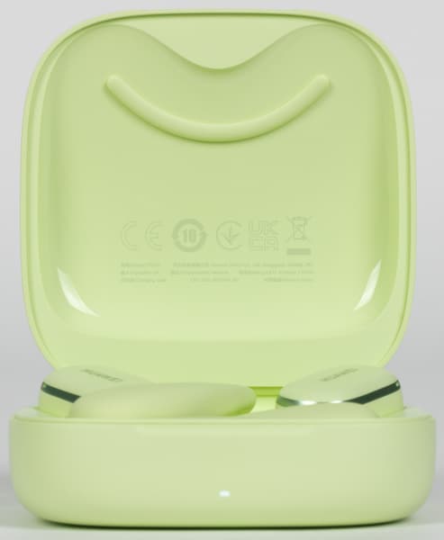 Для более плотного удержания наушников в закрытом кейсе на крышке есть небольшой силиконовый выступ. Под ним размещены логотипы систем сертификации и служебная информация.
