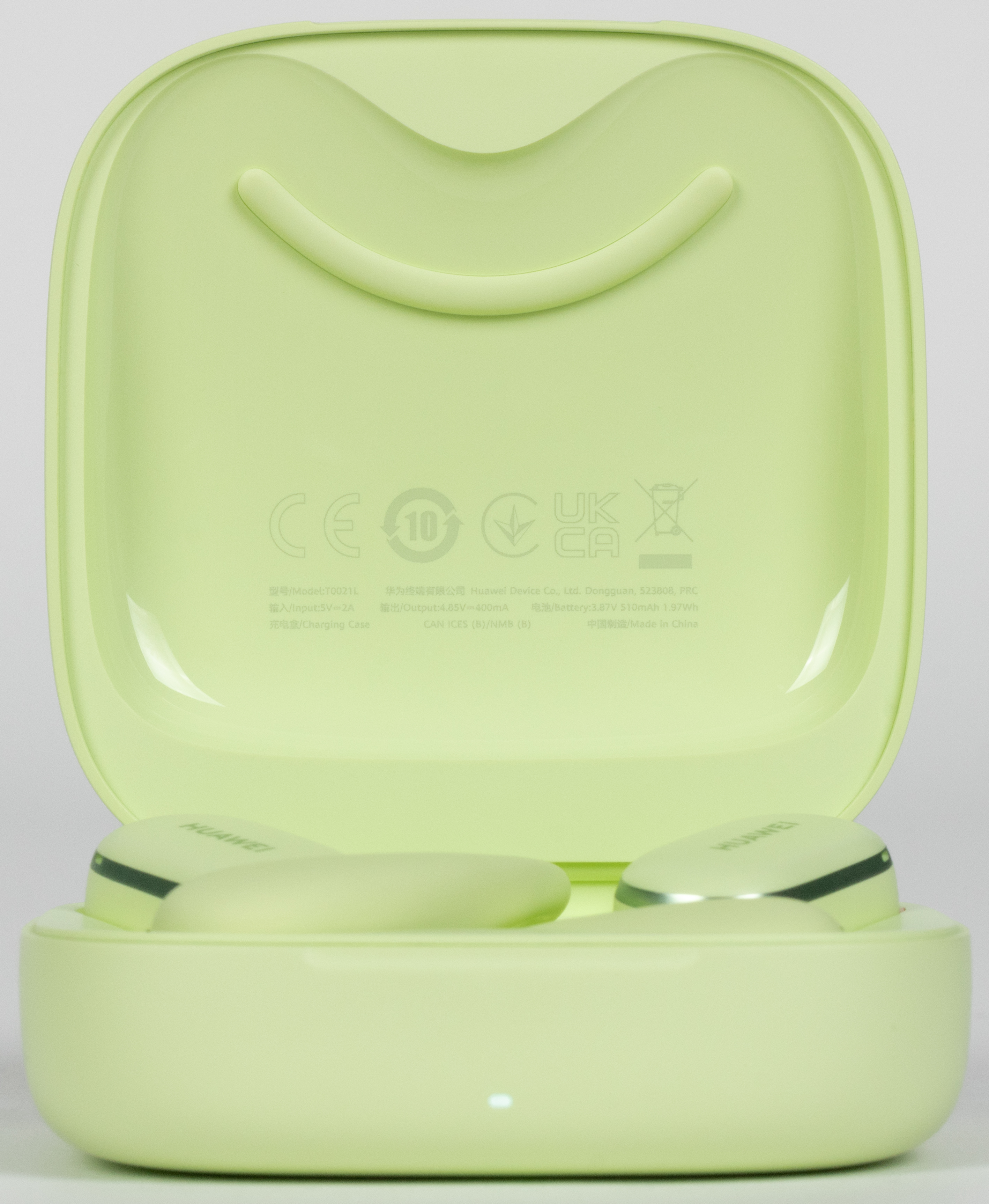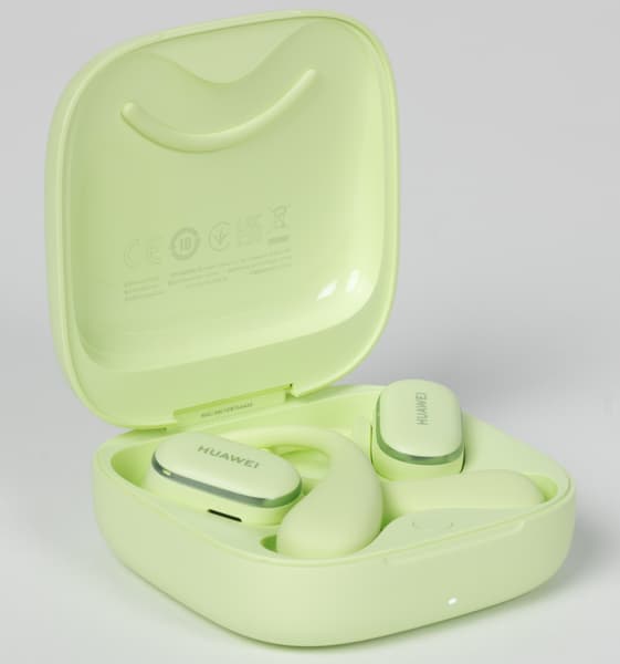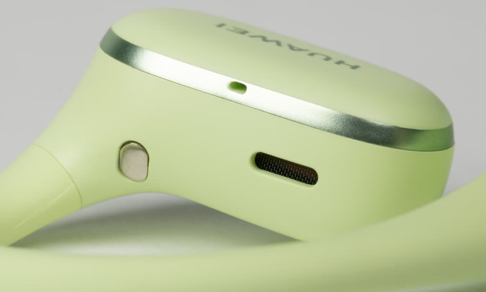 Гарнитура Huawei FreeArc попала к нам до официального старта продаж в упаковке, которая заметно отличается от той, которую в итоге увидят российские пользователи. Потому показывать ее в обзоре мы не будем. Цветовых вариантов у устройства три: классические черный и белый, а также яркий и оригинальный светло-зеленый, который и был у нас на тестировании.