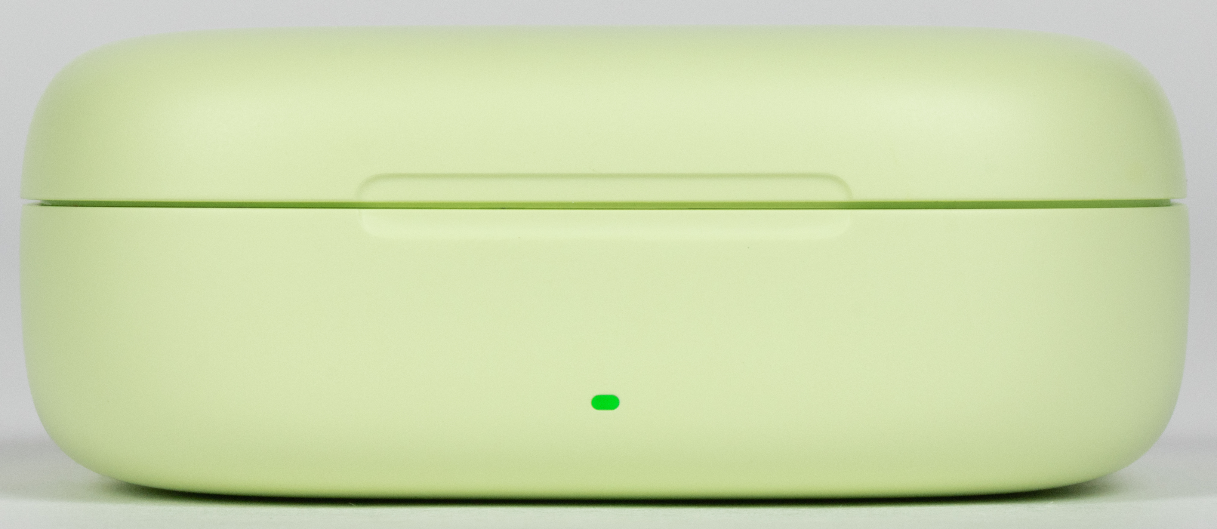 Спереди размещены светодиодный индикатор зарядки и текущего режима работы, а также небольшая выемка, облегчающая поднятие крышки. Открывать кейс одной рукой неудобно в силу его размеров. Тут ничего не поделаешь: заушины надо где-то размещать.