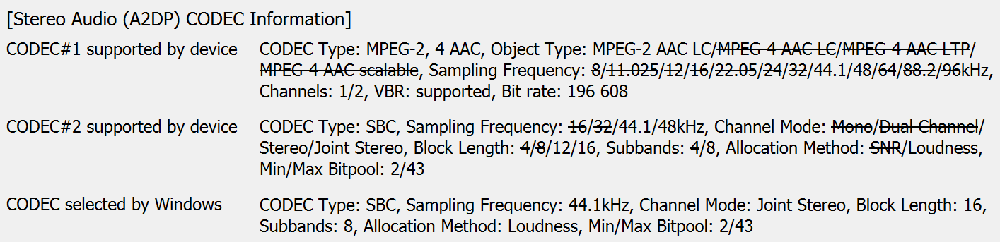 C устройствами под управлением EMUI 10 героиня сегодняшнего обзора поддерживает так называемое «мгновенное сопряжение». Но и с другими оболочками все происходит довольно быстро и легко, как можно убедиться выше. Работать с несколькими устройствами гарнитура не умеет, что было проверено попыткой одновременного подключения к смартфону и ПК под управлением Windows 10. Параллельно с помощью утилиты Bluetooth Tweaker был получен полный список используемых кодеков. Здесь никаких сюрпризов — AAC и SBC.