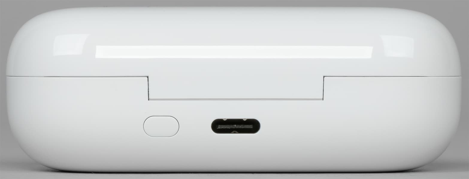 Ниже будет упомянута кнопка активации режима сопряжения наушников с источником звука — напомним, что расположена она на задней стороне футляра рядом с портом для зарядки.