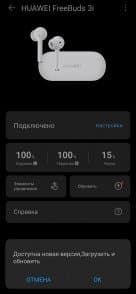Выбранные режимы переключаются по очереди, смена сопровождается голосовыми извещениями на английском: Off (выключено), Noise Cancellation (активное шумоподавление) и Awareness («прозрачность»). Не очень удобно — часто приходится «пролистывать» один из режимов, чтобы добраться до нужного. Возможность управлять шумоподавлением и «прозрачностью» нажатием на разные наушники была бы далеко не лишней. Но тут уж грех жаловаться, само по себе появление новой функции — повод порадоваться и похвалить разработчика. Плюс вполне можно надеяться на очередные обновления, которые сделают взаимодействие с Huawei FreeBuds 3i еще более комфортным.