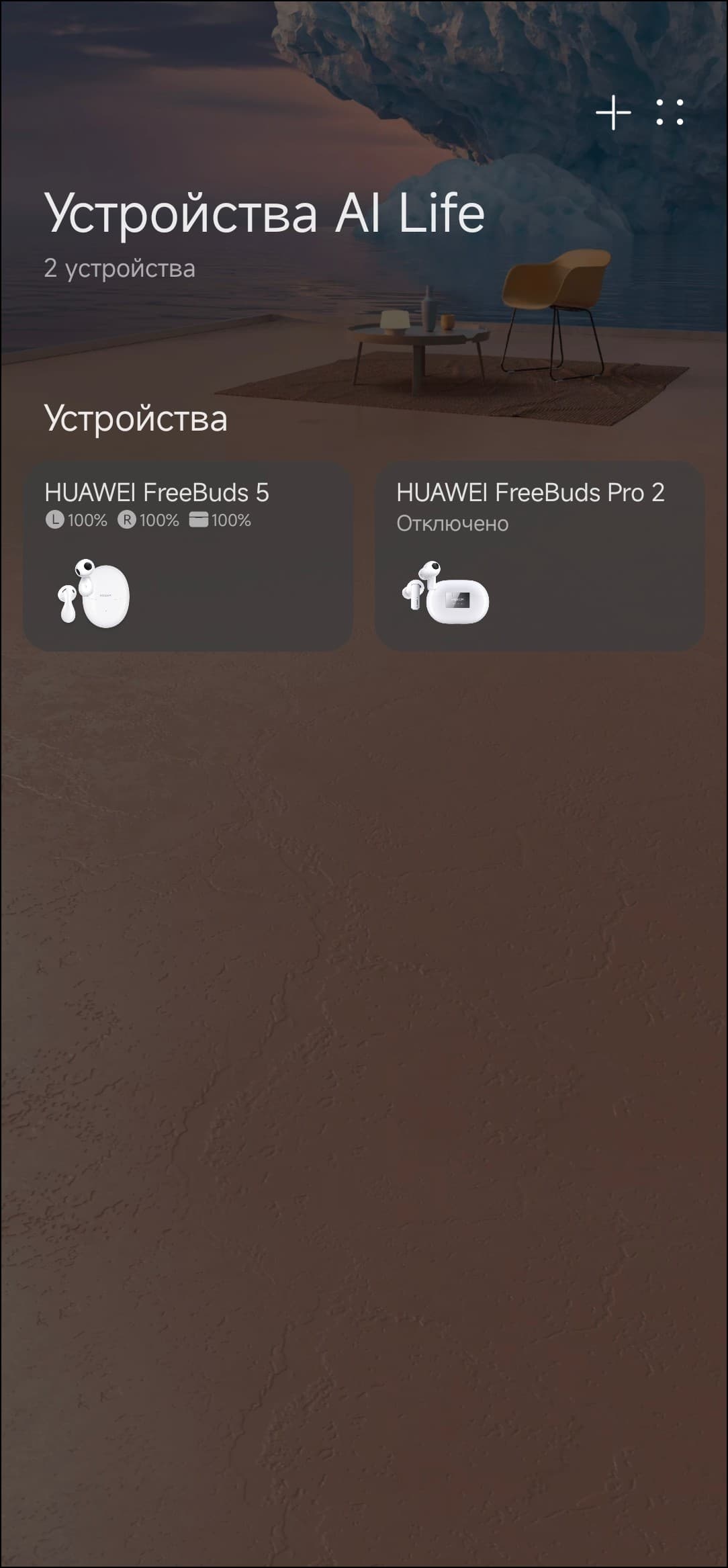 Обладатели смартфонов под управлением EMUI 10 и выше сразу после открытия кейса увидят приглашение подключить гарнитуру. Ну а у остальных есть два других варианта: воспользоваться меню смартфона или ПО Huawei AI Life. Лучше предпочесть второй и начать с установки AI Life — так удобнее, да и для полноценного использования гарнитуры она совершенно точно необходима. Устанавливать ее по-прежнему лучше из AppGallery или с сайта Huawei, версия в Google Play может быть далеко не самой актуальной. Устанавливаем, запускаем, нажимаем на кнопку добавления устройства.