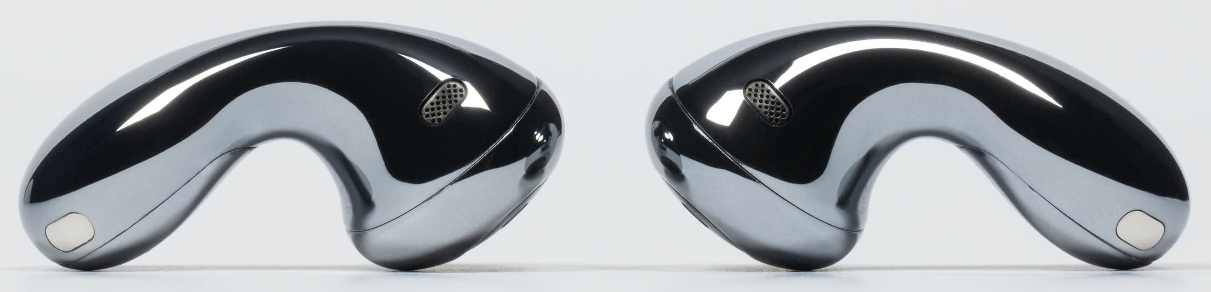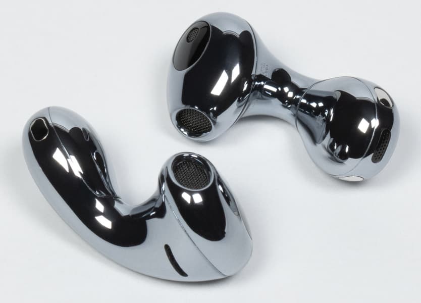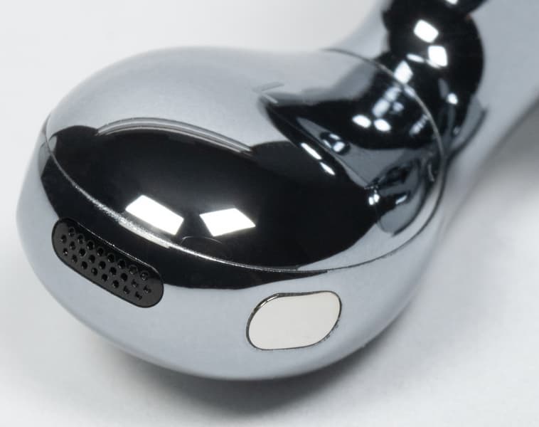 Микрофоны на нижней части «палочек», по всей видимости, используются как для работы «шумодава», так и для передачи голоса. По бокам от них видны контакты для зарядки.