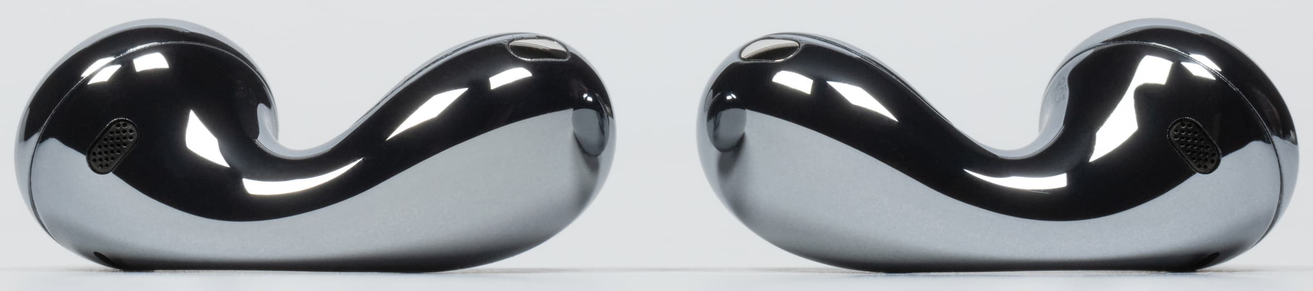 Сегодня же посмотрим на Huawei FreeBuds 5, которым тоже оригинальности не занимать. Это по-прежнему вкладыши, тут всё как всегда. А вот оформление уже далеко от привычного — разработчики называют это решение «футуристическим дизайном в форме капли». Вполне корректное определение — и нотки футуризма во внешнем виде чувствуются, и на каплю корпус действительно похож. Вдохновлен он, судя по описанию в маркетинговых материалах, формой застывших капель закаленного стекла — так называемых капель принца Руперта.