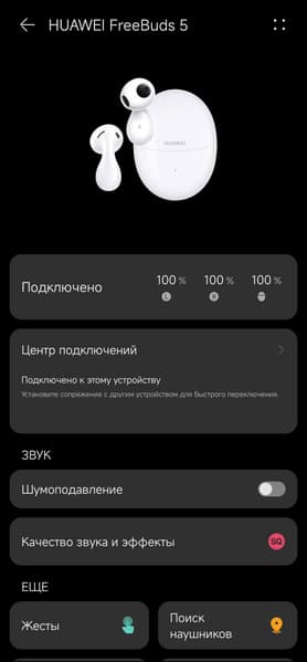 Производитель заявляет также возможность подключить две пары FreeBuds 5 к одному телефону Huawei, но у нас на руках была только одна пара и смартфоны других производителей, так что проверить эту возможность не удалось. В приложении можно активировать режим низкой задержки, но нам он так и не пригодился. В режиме приоритета качества звука «рассинхроны» в играх предсказуемо случались, а вот в режиме приоритета качества соединения мы с ними не столкнулись ни разу.