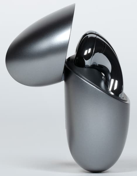 Дизайн, конечно, сразу привлекает внимание — пожалуй, такого мы еще не видели. По форме кейс больше всего похож на яйцо, хотя у всех свои ассоциации — некоторым он, например, напоминает упаковку от дорогой парфюмерии. Кейс компактный, задняя стенка практически плоская, острых углов нет — соответственно, в кармане его носить удобно.