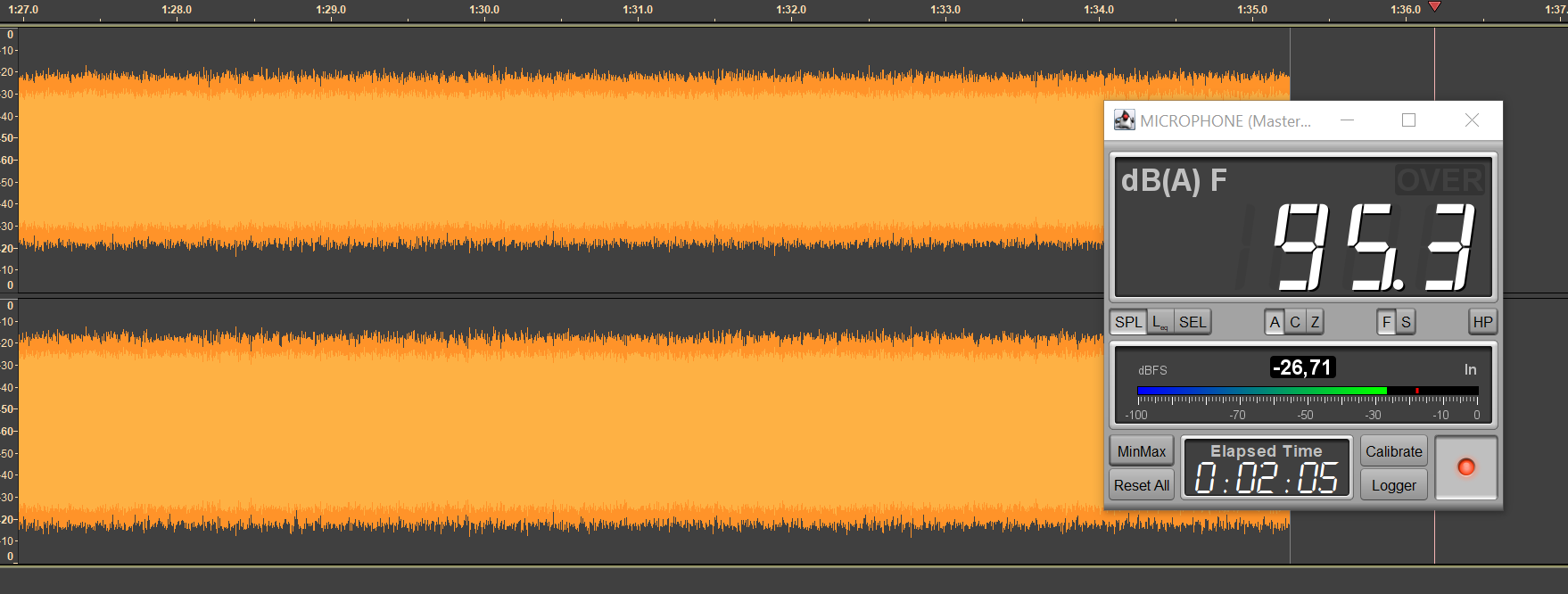 Вкратце напомним нашу методику тестирования автономности беспроводных гарнитур. Безопасным уровнем звукового давления при прослушивании музыки в наушниках считается 75 дБ, но на практике большинство слушателей предпочитает уровень в районе 90-100 дБ. Мы транслируем в наушники белый шум, фиксируя уровень SPL в районе 95 дБ, сразу после старта воспроизведения запускаем запись сигнала с измерительного стенда — по длине получившегося трека легко понять, сколько проработал каждый из наушников.