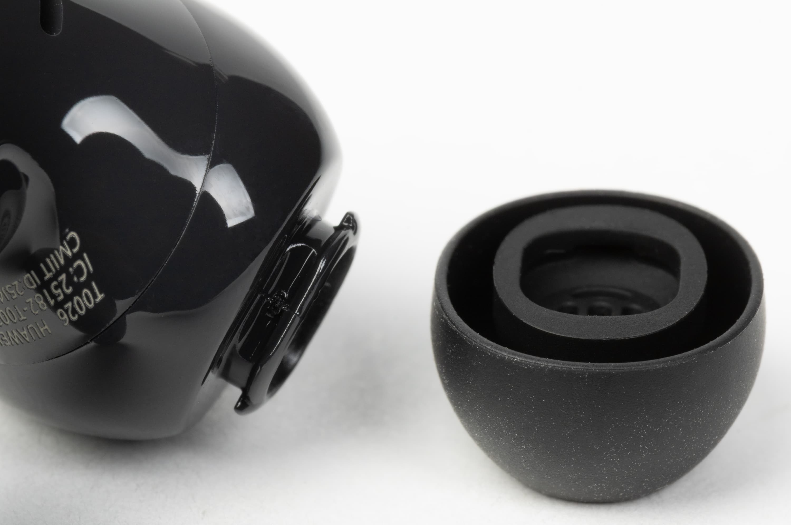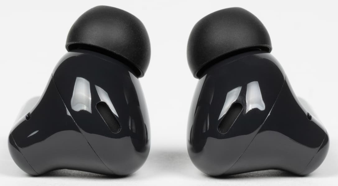 Внутренний микрофон системы шумоподавления находится на поверхности округлой части, обращенной к уху. Вполне вероятно, что это же отверстие используется в качестве для сброса лишнего давления при работе динамического драйвера.