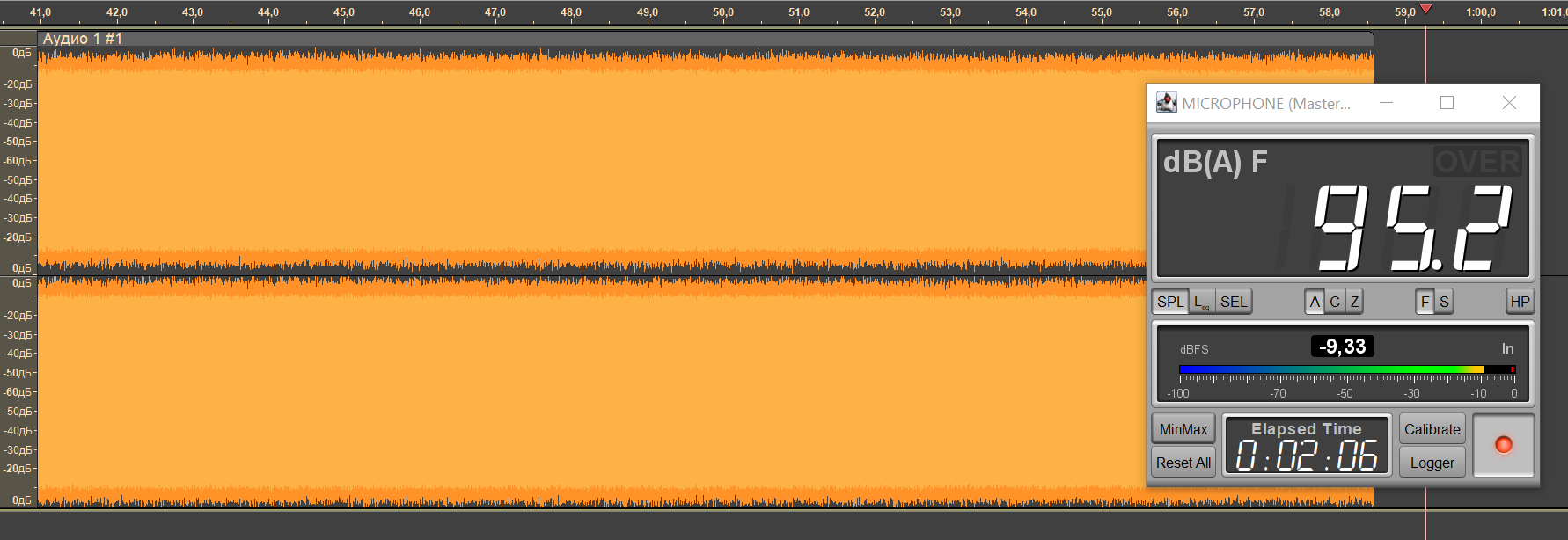 Безопасным уровнем звукового давления при прослушивании музыки считается 75 дБ, но на практике большинство слушателей предпочитает уровень 90-100 дБ. Мы транслируем в наушники белый шум, фиксируя уровень SPL в районе 95 дБ, сразу после старта воспроизведения запускаем запись сигнала с измерительного стенда по длине получившегося трека легко понять, сколько проработал каждый из наушников.