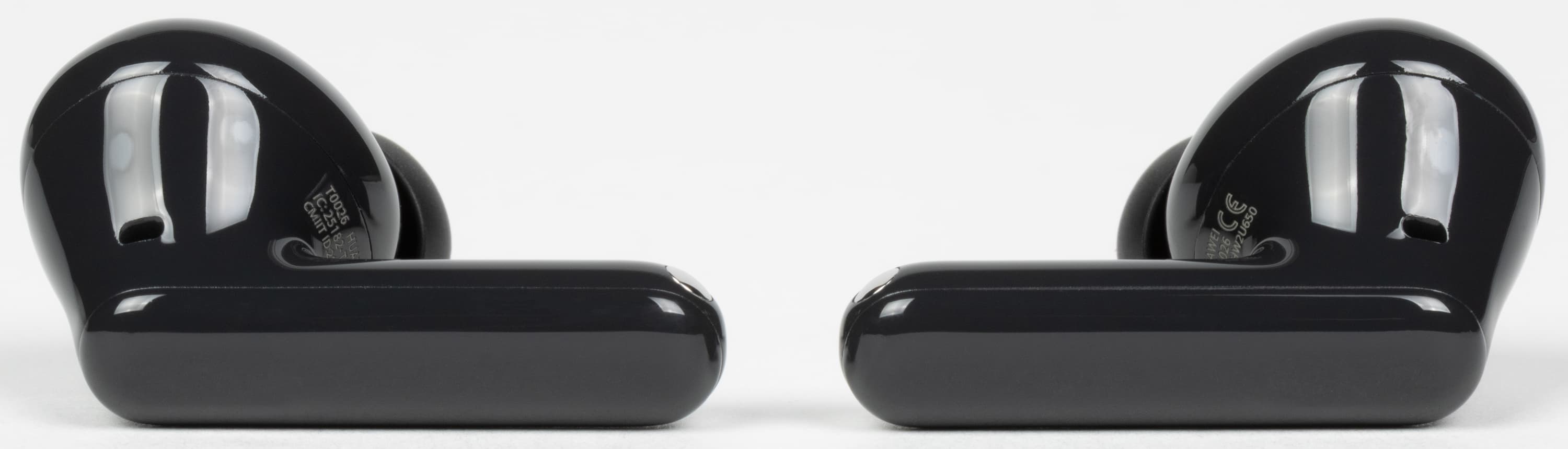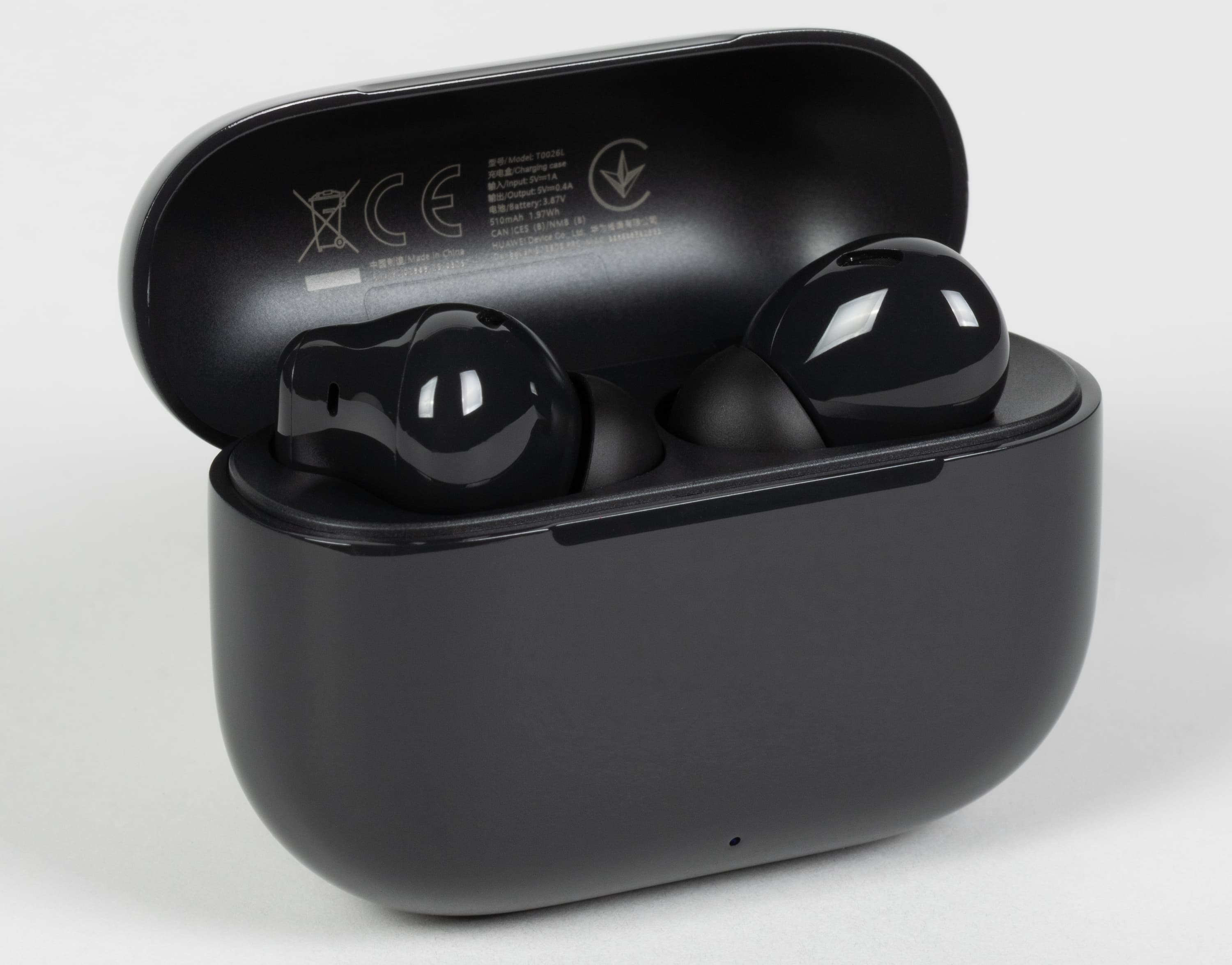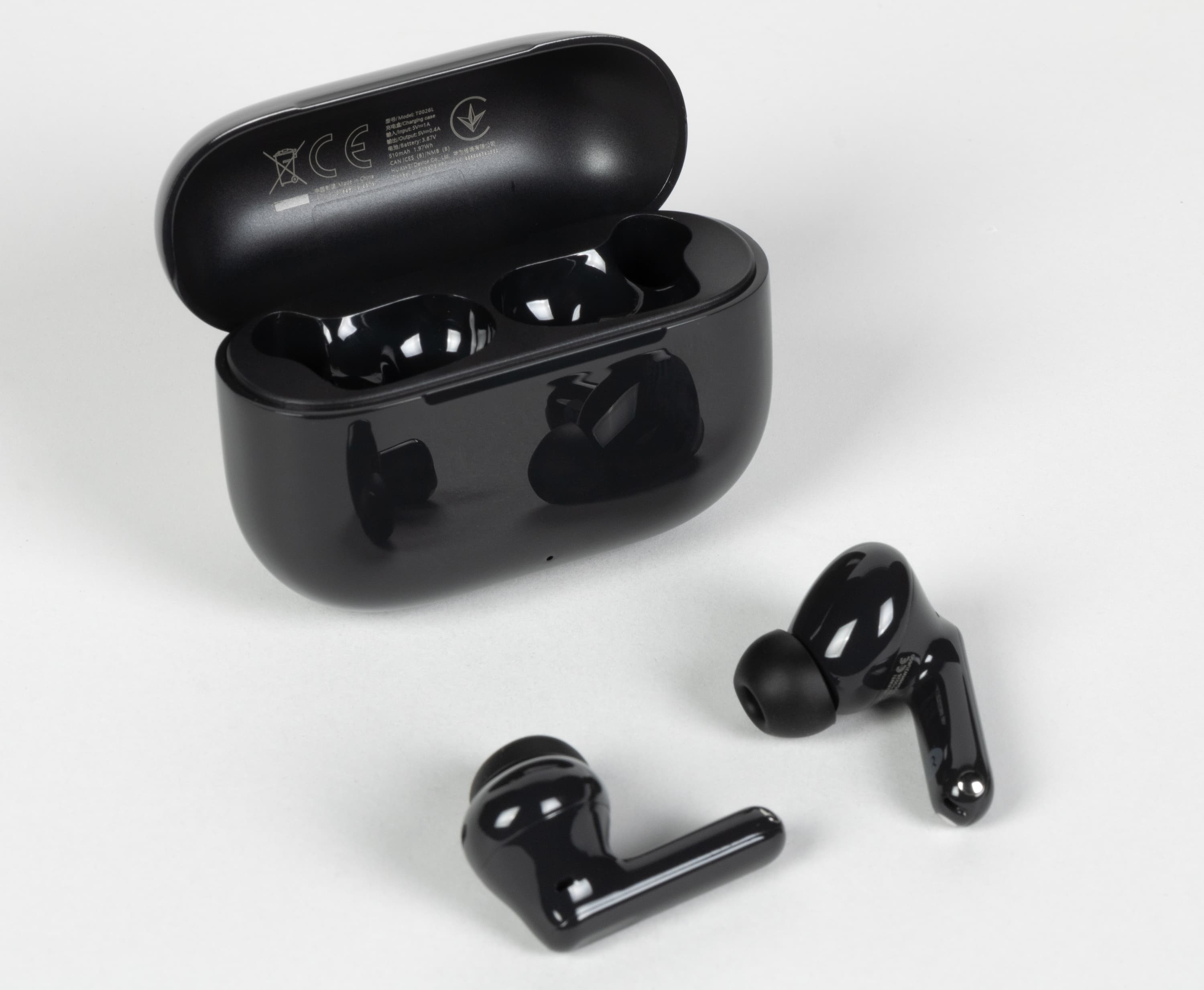 Оформление кейса Huawei FreeBuds SE 3 разработчики сделали максимально эффектным за счет основания со стилизованной под кожу поверхностью и зеркальной крышки. Да и сами наушники выглядели довольно интересно благодаря сочетанию глянцевого и матового пластика. FreeBuds SE 4 ANC же выглядит максимально незатейливо и просто — широко распространенная форма корпуса, минимум декоративных элементов, только глянцевый пластик на внешних поверхностях. Который, кстати, на удивление легко покрывается отпечатками пальцев, которые хорошо заметны даже на черной версии.