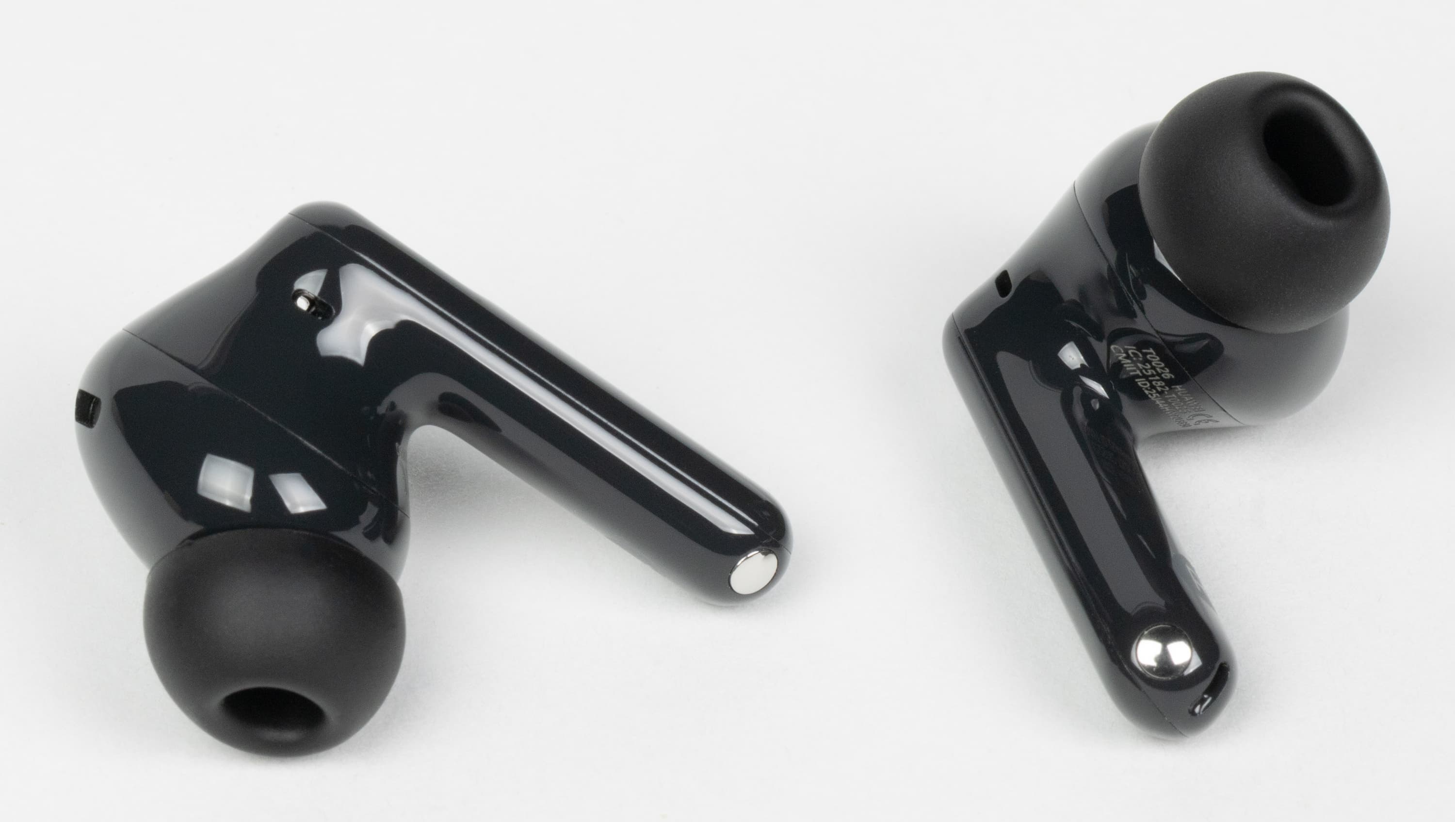 Управление Huawei FreeBuds SE 4 ANC осуществляется посредством тач-панелей на внешней стороне корпуса наушников. Как уже упоминалось выше, сенсорная зона подчеркнута с помощью небольшого углубления, но без традиционной шероховатой структуры. Тем не менее, найти ее на ощупь довольно легко — с этим проблем не возникает. Работает управление корректно, все прикосновения регистрируются с первого раза. Одиночное касание заблокировано во избежание случайных срабатываний.