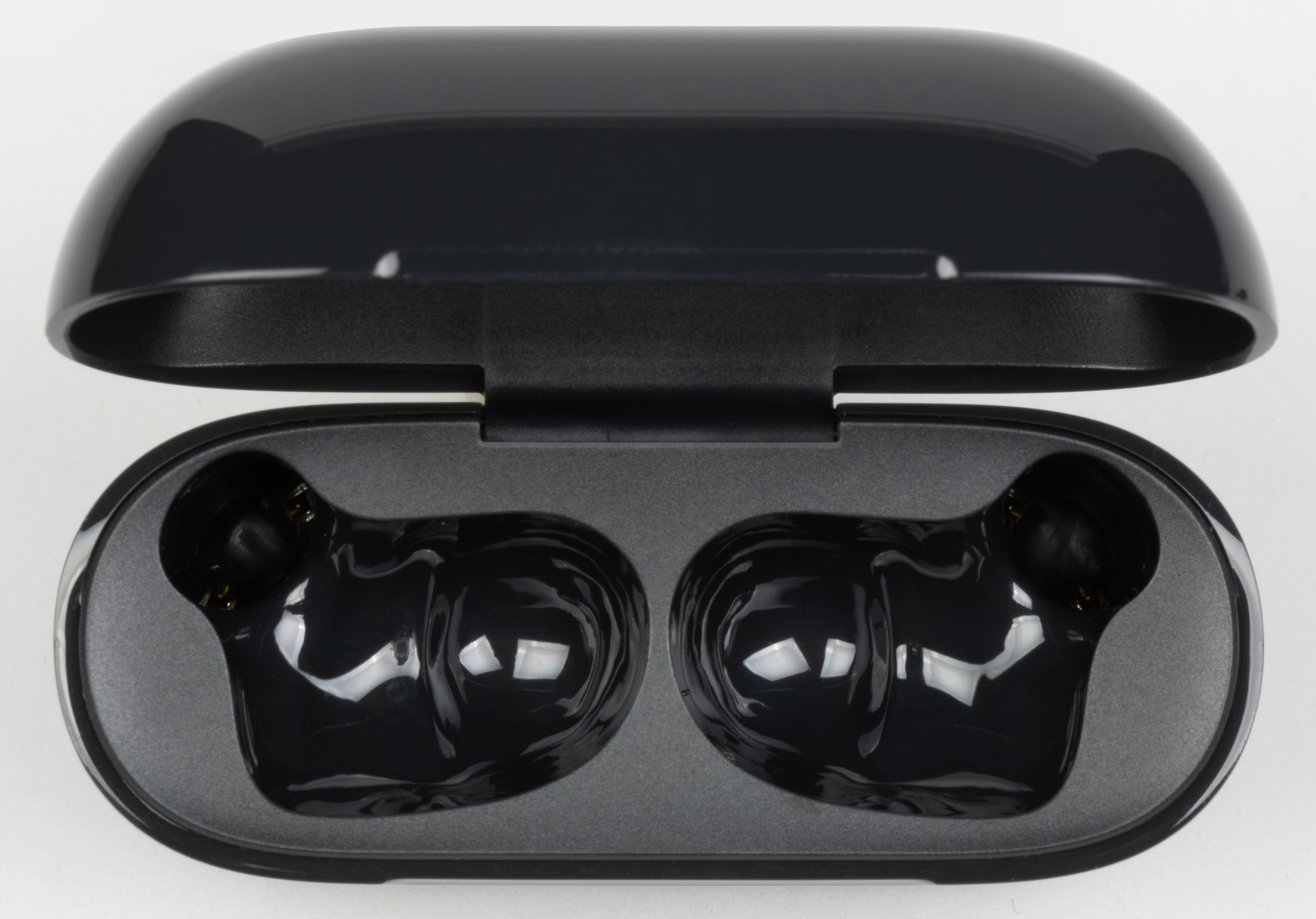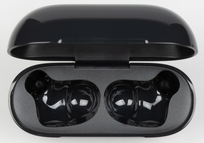 На внутреннюю поверхность крышки нанесена служебная информация, углубления для дополнительной фиксации наушников при этом отсутствуют. На качестве удержания это сказывается не лучшим образом — если потрясти кейс возле уха, становится слышно, как наушники слегка болтаются внутри. Однако в повседневном использовании эта особенность никак себя не проявляет, так что повода для серьезной критики нет.