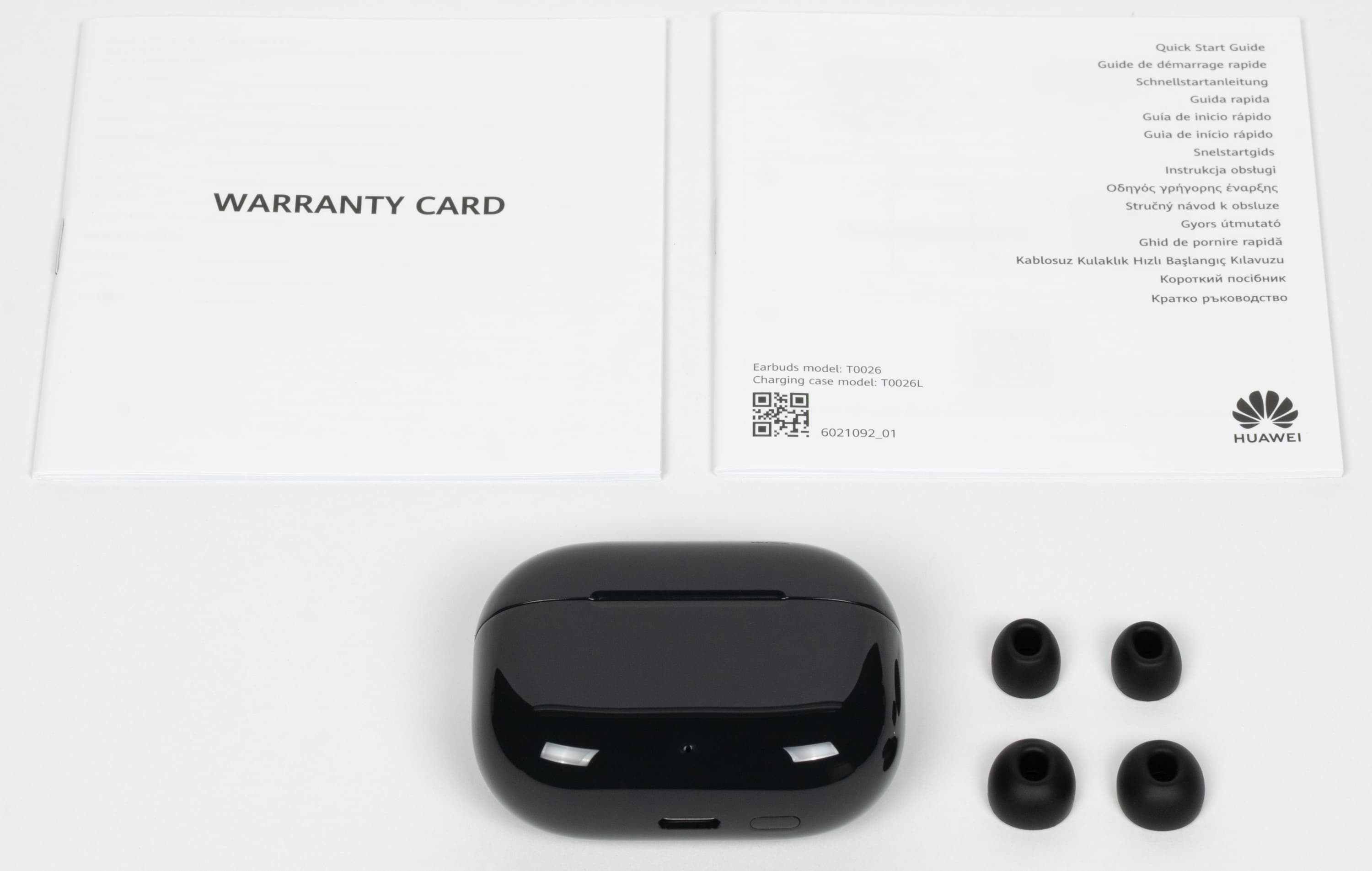 Комплект поставки тоже привычный: наушники в кейсе, документация, запасные силиконовые насадки. Кабели для зарядки в коробках с современными TWS-гарнитурами встречаются все реже — вероятно, совсем скоро наступят времена, когда мы окончательно перестанем обращать на это внимание. Пока же вновь заметим, что лучше уж никакого кабеля вообще, чем короткий «огрызок», добавленный в комплект для галочки.