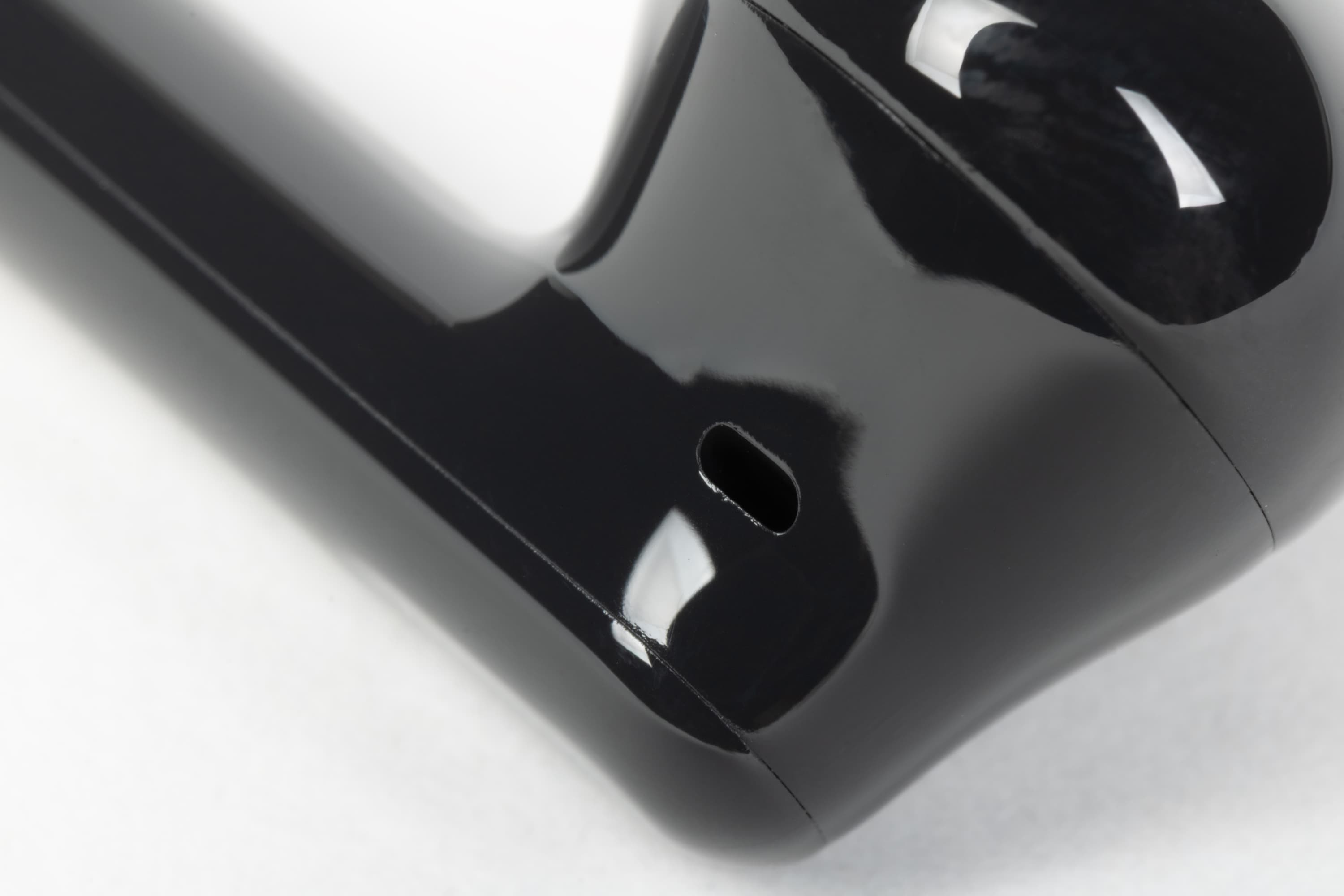 Небольшое отверстие внешнего микрофона «шумодава» расположено в месте перехода округлой части корпуса наушника в ножку.