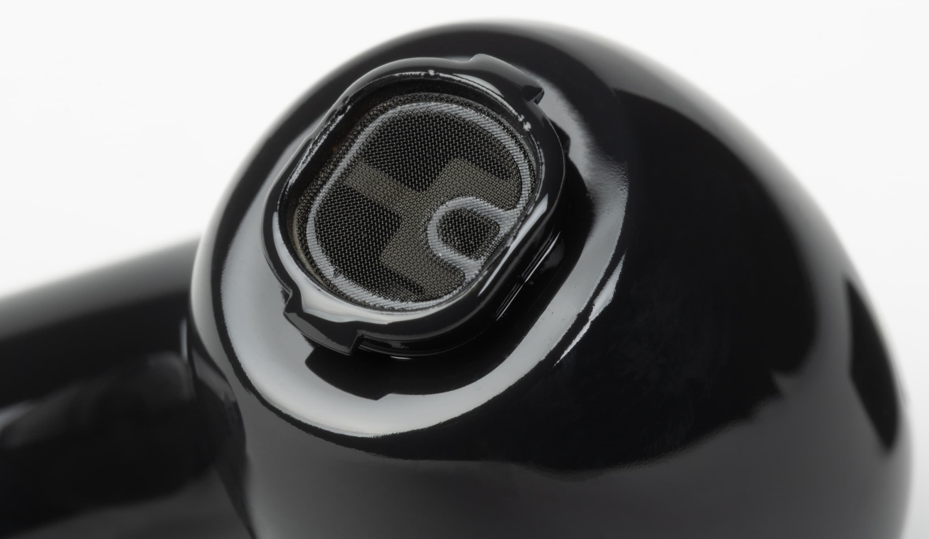 Звуковод закрыт мелкой сеточкой, немного утопленной внутрь. Почистить ее при необходимости будет непросто, но благодаря дополнительным сеткам на силиконовых насадках делать это придется лишь изредка.