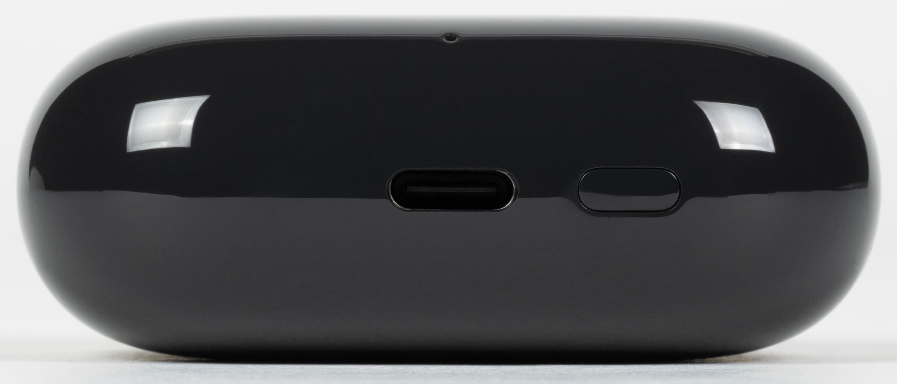 На дне футляра находится порт USB Type C для зарядки, также кнопка активации Bluetooth-сопряжения. Размещена она заподлицо с корпусом, нажимается довольно легко, но все же с усилием чуть выше среднего — случайное срабатывание практически исключено. С практической точки зрения особого смысла в отдельной кнопке без поддержки мультипойнта нет — ее наличие скорее формальность.