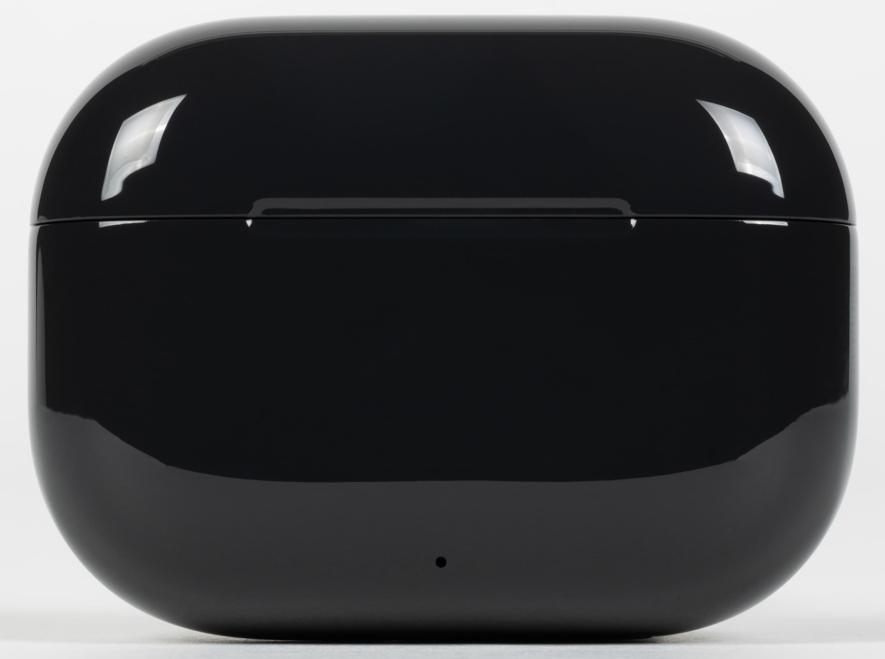 На передней панели под крышкой виднеется небольшая прорезь, призванная облегчить ее открытие. Ниже расположен маленький светодиодный индикатор зарядки и режима сопряжения.