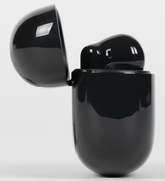 Наушники выглядят вполне обычно по нынешним меркам и лишены ярких деталей. Сделаны они, как и кейс, из глянцевого пластика, который быстро покрывается пятнами от прикосновений.