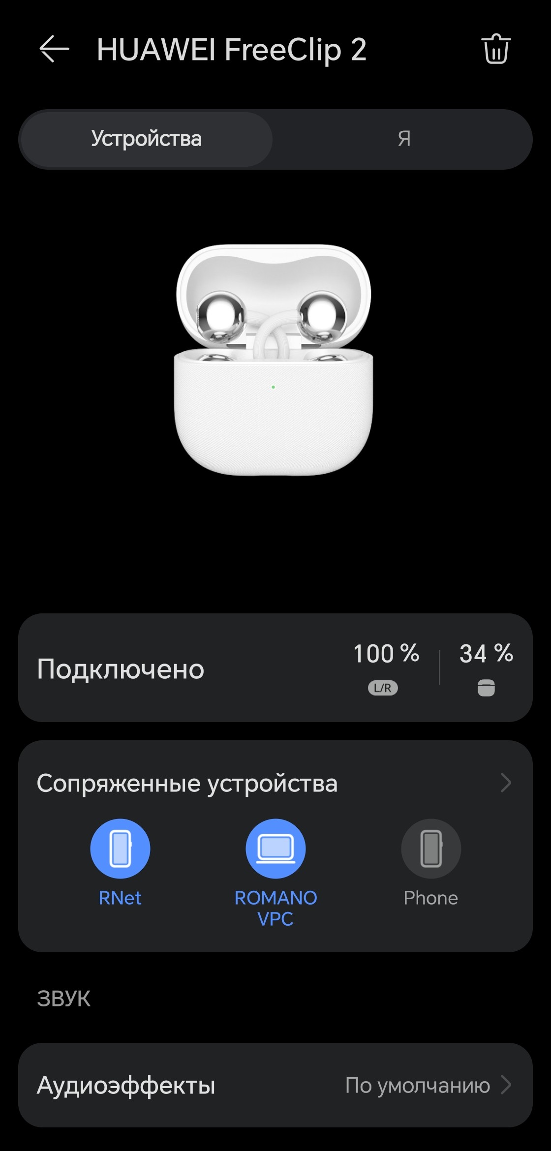 Далее расположен виджет центра подключений, который который мы регулярно и вполне заслуженно хвалим. На странице его настроек можно увидеть полный список сопряженных устройств с возможностью удалить ненужные, а также выбрать предпочтительные, если это необходимо. Мы за все годы тестирований наушников Huawei так и не смогли найти причин воспользоваться этой опцией — автоматика отлично справляется сама, оперативно переключая фокус между устройствами в нужный момент.