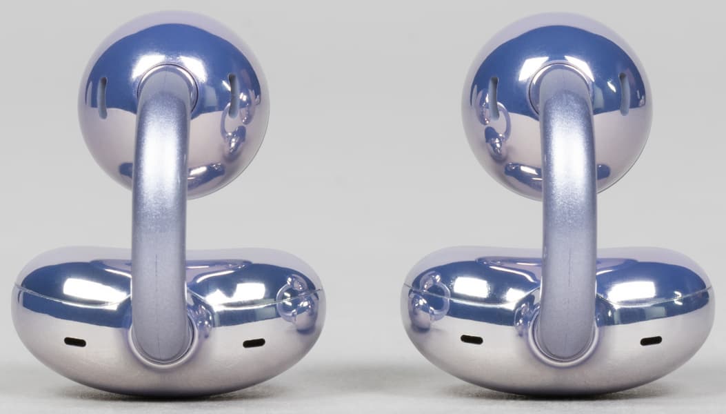 В верхней части «фасолины» размещены отверстия микрофонов системы шумоподавления и «защиты от ветра» при голосовых вызовах. На верхней поверхности круглого элемента видны отверстия микрофонов для передачи голоса.