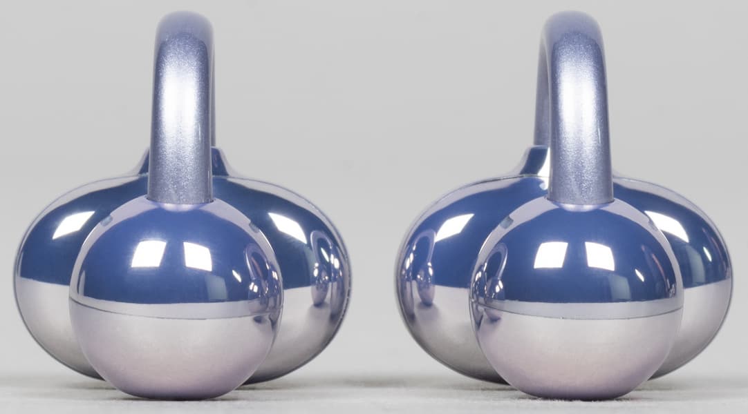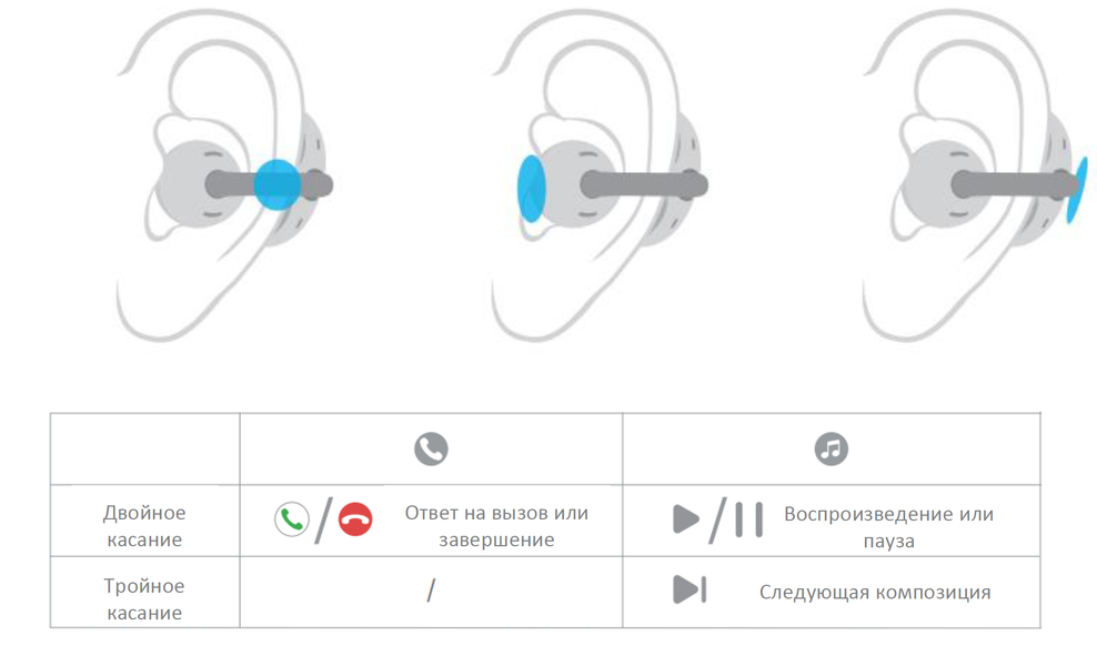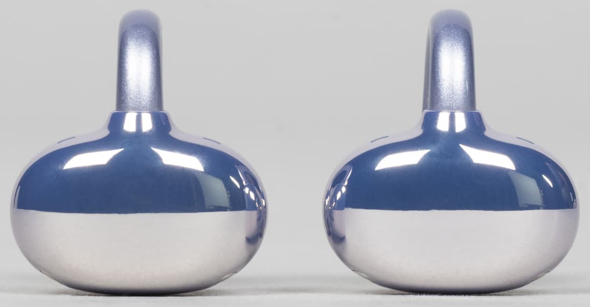 Управляется гарнитура прикосновениями к любой из поверхностей — хоть округлой части, хоть фасолевидной, хоть соединяющего их гибкого элемента. Мы условно называем управление сенсорным, но на деле фиксацией касаний явно занимаются микрофоны — совсем легкие прикосновения не регистрируются, зато даже легкие тапы срабатывают всегда. По умолчанию двойным касанием можно включать или останавливать воспроизведение, отвечать на вызов и завершать его. Тройное касание отвечает за пролистывание композиций.