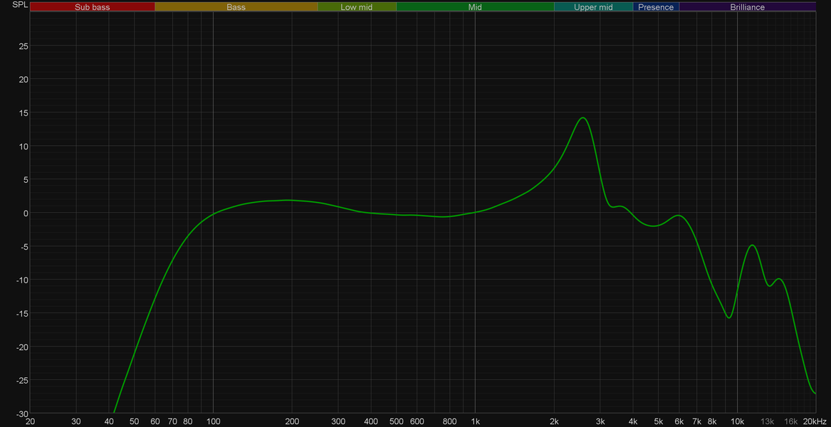 Для измерения их АЧХ мы используем специально подготовленное помещение и мониторную акустическую систему, воспроизводящую свип-тон. Естественно, что АЧХ колонок далеко не равномерна, потому мы предварительно получаем ее график с помощью калиброванного измерительного микрофона. Далее полученные данные используются для построения корректирующего профиля, призванного скомпенсировать особенности акустики. После этого сигнал записывается с помощью героя тестирования, занимающего то же положение, что и измерительный микрофон ранее. Полученный график корректируется с помощью созданного предварительно профиля и на выходе у нас остается собственная АЧХ тестируемого микрофона.