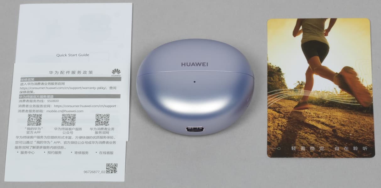Комплектация поступивших в продажу наушников может серьезно отличаться от той, что увидели мы. Но всё же расскажем, что внутри коробки мы обнаружили краткую инструкцию, а также купон, позволяющий получить подписку на стриминговый сервис Huawei Music.