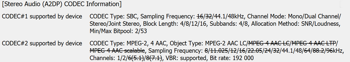 Зато мы выяснили, что максимум параметра Bitpool у SBC выставлен на уровне 53, что даже чуть выше значения, указанного в рекомендованном профиле High Quality. А вот битрейт AAC «зарезан» на уровне 192 Кбит/с — решение крайне спорное, более-менее вероятным объяснением ему может послужить только стремление обеспечить более стабильную связь с источником.