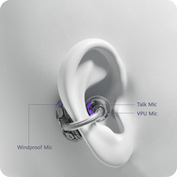 Ушной проход остается свободным, пользователь слышит всё происходящее вокруг — во время прогулок или пробежек на свежем воздухе это может прийтись очень кстати, да и при прочих вариантах использования пригодится. Правда, пассивная звукоизоляция предсказуемо отсутствует, где-нибудь в транспорте это может оказаться минусом. Нечто подобное предлагают наушники с костной проводимостью, но они обладают не самым лучшим качеством звучания, Huawei FreeClip же потенциально обеспечивает гораздо более высокий его уровень. Плюс авторы гарнитуры анонсировали значительно меньший объем «утечек» звука.