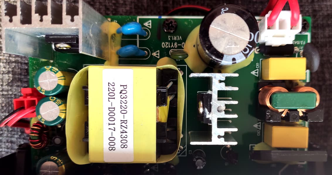 На обратной стороне внимание сразу привлекают трансформатор и пара лишенных какой-либо маркировки транзисторов на радиаторах.