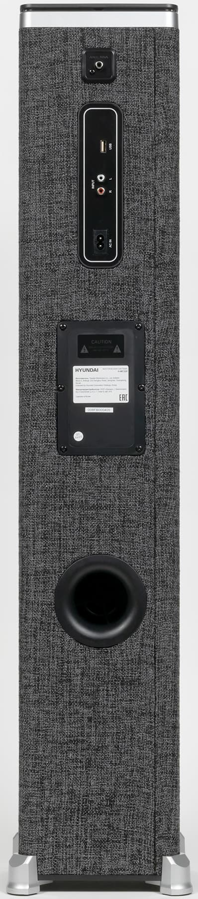 Как уже упоминалось выше, размещать колонку стоит с учетом того, что раструб фазоинвертора выведен на заднюю стенку — за ним не должно быть стен или других препятствий. В остальном же полная свобода — колонка сравнительно небольшая, весит немного… Главное, чтобы розетка поблизости была — аккумулятора у Hyundai H-MC320 нет.