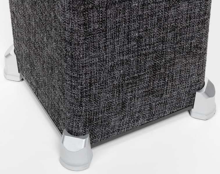 На дне корпуса расположены ножки. Выполнены они из пластика, но отделаны «под металл» — выглядят приятно. Колонка не слишком тяжелая — всего около 7 кг, потому особых опасений по поводу их надежности не возникает.