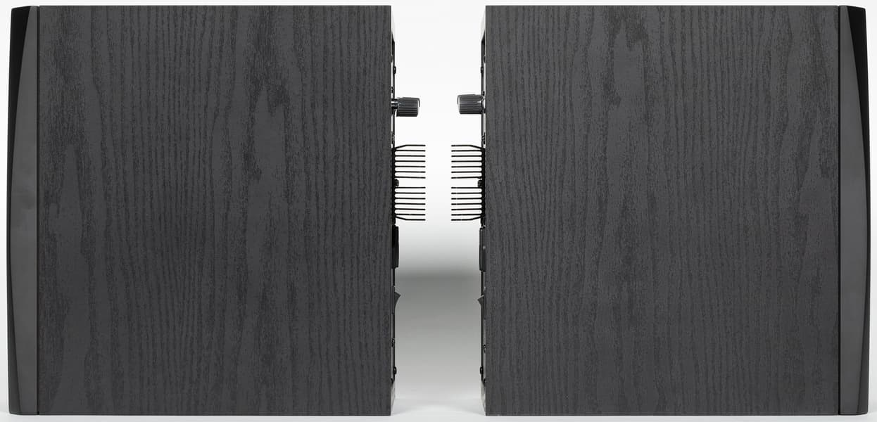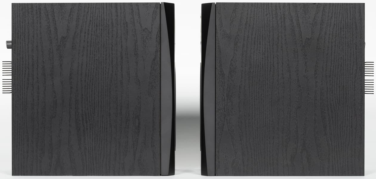 Колонки выполнены из MDF и обладают довольно-таки внушительной массой — по 6,5 кг каждая. Оформление простое и строгое, но при этом элегантное — они не будут привлекать лишнего внимания и отлично впишутся практически в любой интерьер.