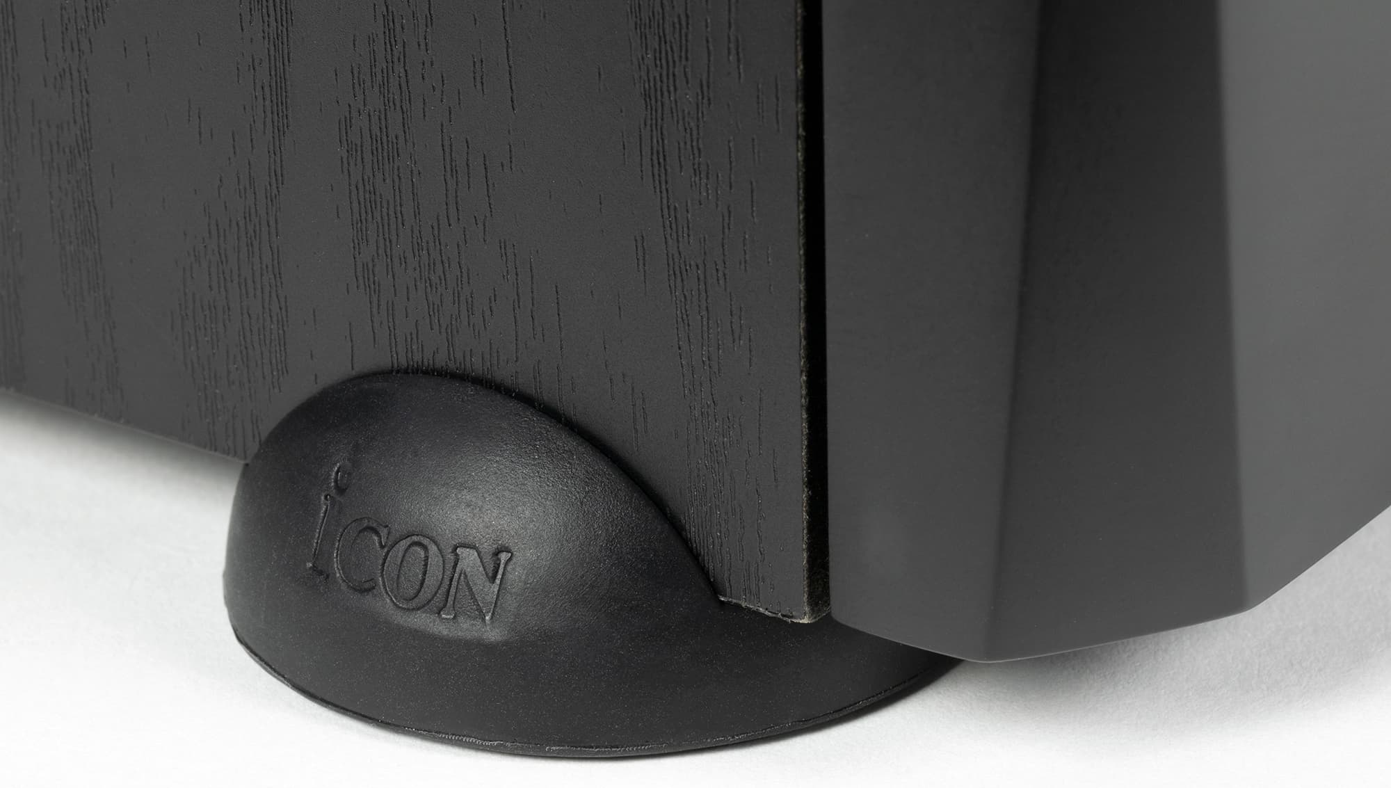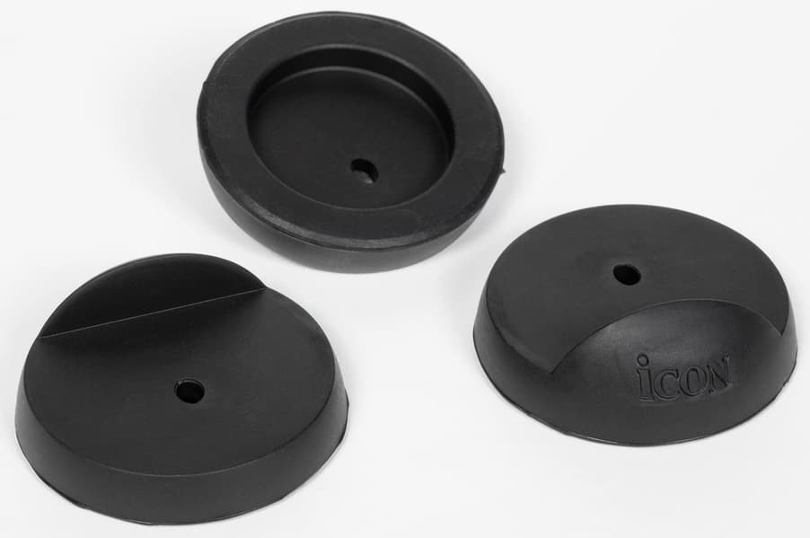 Резиновые ножки призваны поглотить лишнюю вибрацию и даже имеют собственное имя — производитель называет их Vasorb. Они довольно крупные — диаметр нижней части составляет 55 мм. На выступ, примыкающий к стенке мониторов при установке, нанесен логотип производителя. В центре размещено отверстие, которое теоретически может использоваться для крепления ножек ко дну колонок. Но соответственных крепежных элементов в комплекте нет, да они и не особо нужны — ножки прекрасно служат и без дополнительной фиксации.